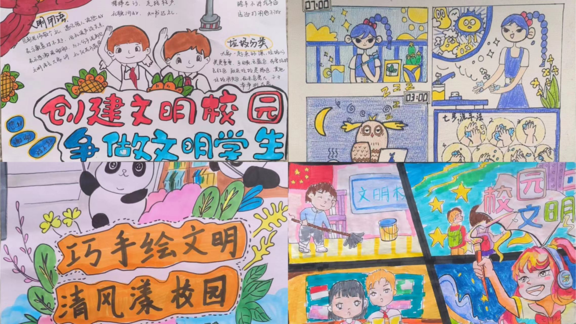 同学们结合生活中因破坏环境导致生态恶化等现状,激发创作灵感。通过创新方式,用灵动的画笔绘制出一幅幅丰富多彩的画作,用灵巧的双手创作出一个个别具心裁的手工制品。作品范畴包括:发现身边不文明行为,展现个人生活中环保场景;结合校园禁烟活动,采取创意表达形式;聚焦周边水资源浪费情况,宣传节水环保意识等。