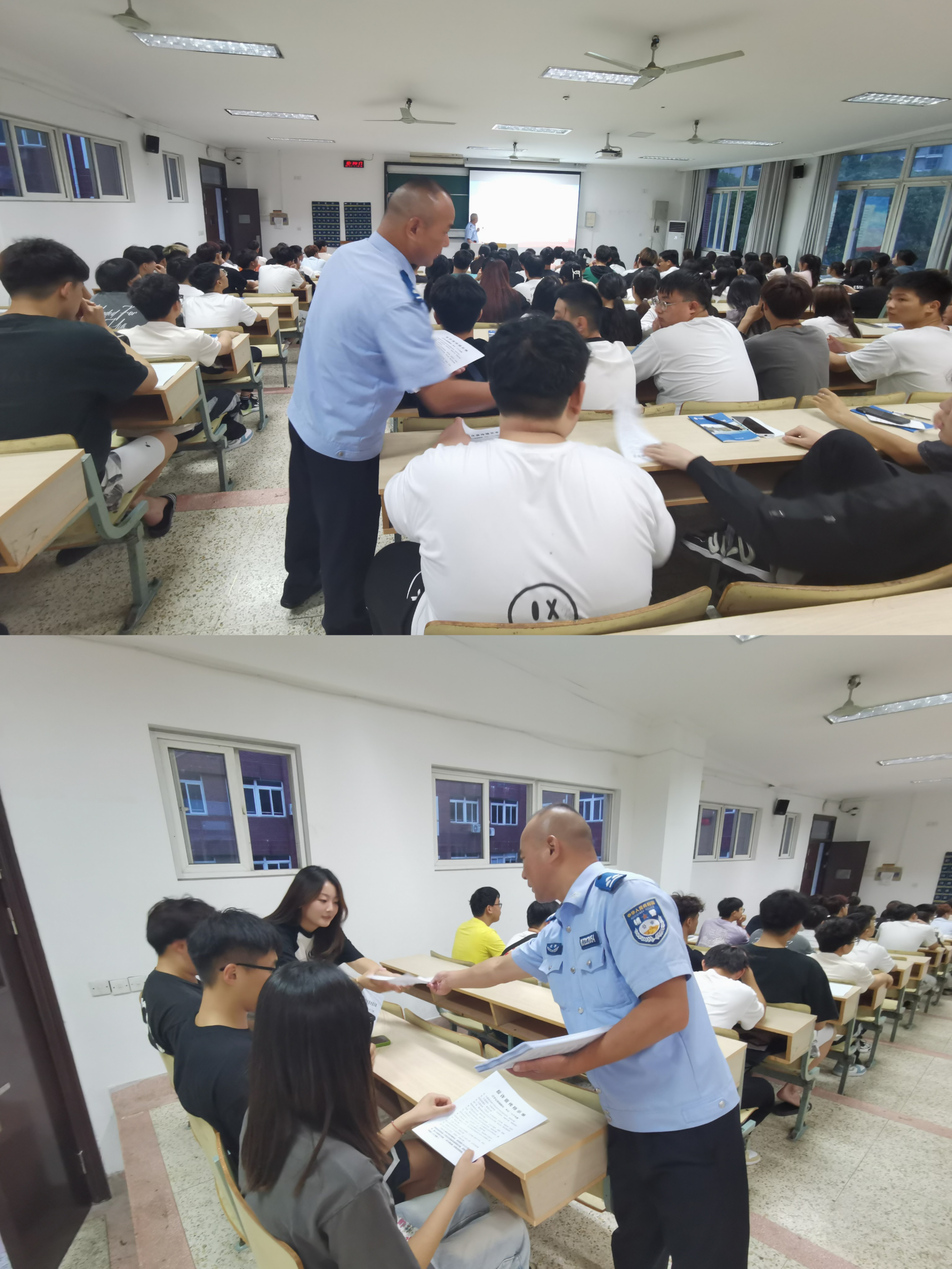 9月11日晚,学院保卫处、学生处牵头,邀请江宁开发区派出所娄军来警官走进正德学院,为2023级新生开展开学第一课———“反诈宣讲”。民用航空系作为本次活动第一站,全体新生热情高涨,课堂氛围活跃,达到了预期的效果。