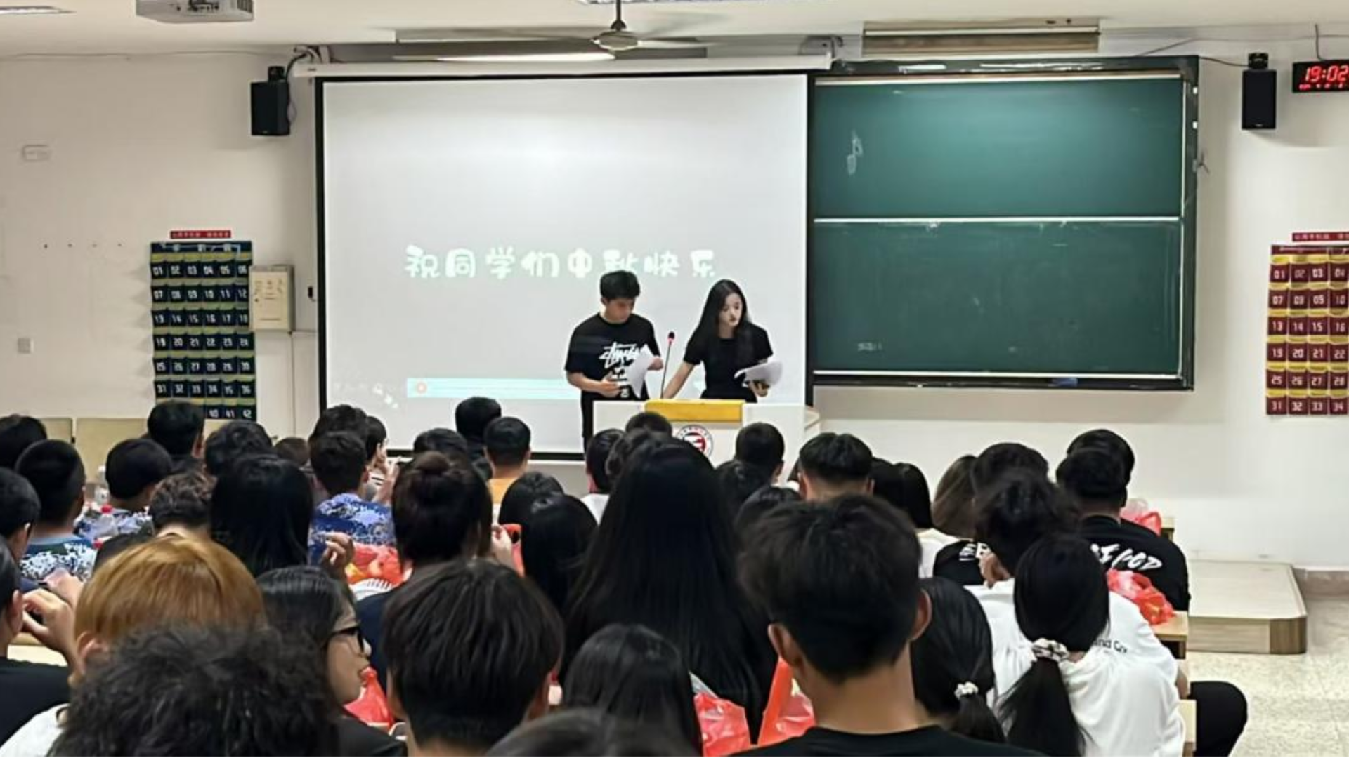 海上生明月,天涯共此时。中秋意味着团圆,节日代表着欢庆,民航系近300名新生在军训中度过此次中秋佳节。为了给新生们留下美好回忆,民用航空系于9月17日中秋当天晚18:30在1号教学搂1202、1203教室举办“缘聚民航 月圆中秋”主题新生联欢会。