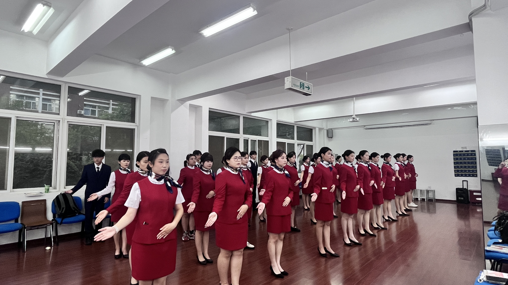紧接着,王老师对同学们的发型也提出了具体的要求,并且分享了着装和仪态的小贴士。