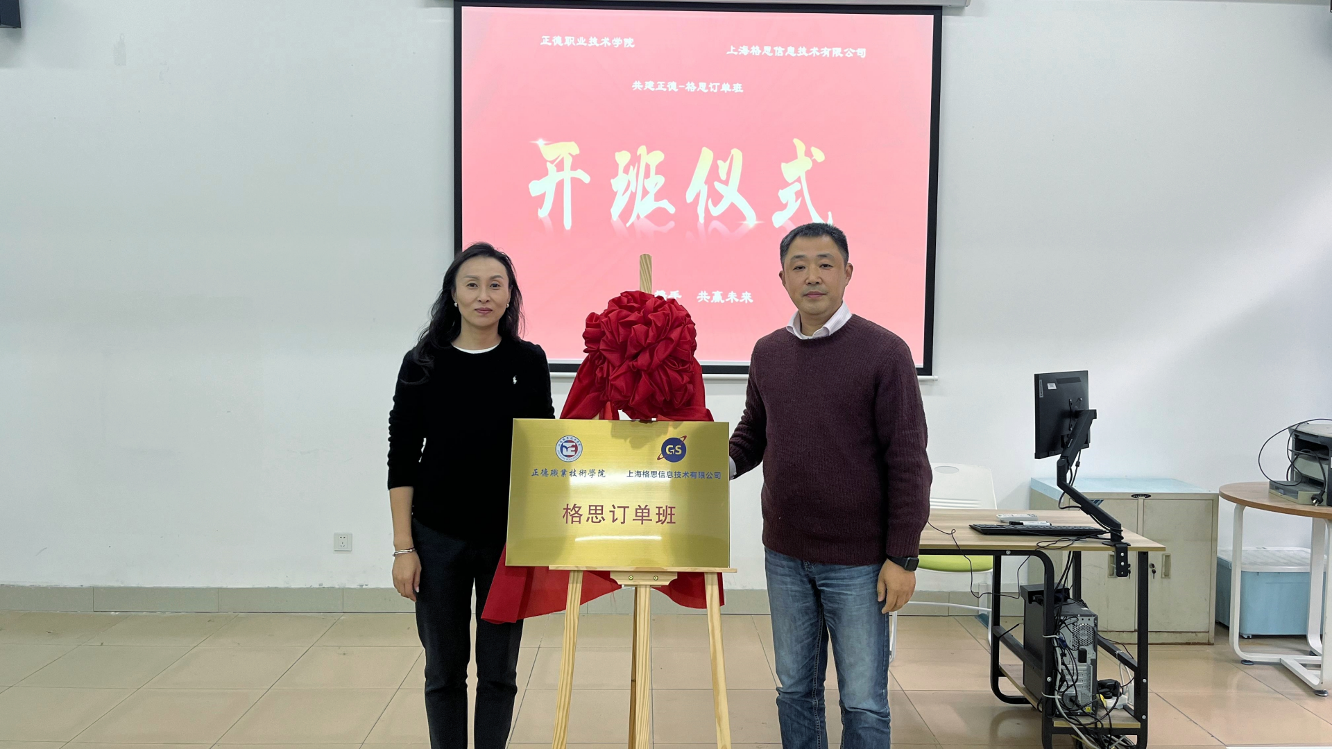 12月8日下午,春满四合院 与上海格思信息技术有限公司(以下简称上海格思)共建的“格思订单班”揭牌仪式在5109D教室隆重举行。上海格思装配中心副主任、中国科学院“科苑名匠”许国平、热控产品事业部汪珏、人力资源部梁蒙蒙以及学院相关部门领导、订单班学生代表一同参加此次揭牌仪式。