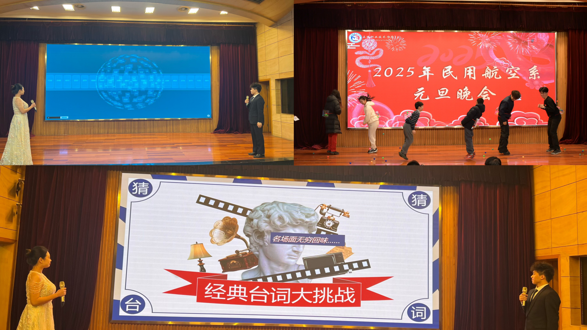 旧岁已展千重锦,新年再进百尺竿。12月26日晚,“灵蛇献瑞 奔赴新愿”2025年民用航空系元旦晚会在学院报告厅举办。院团委书记黄晓帆、副书记魏兴彪、系党支部书记查理、系团总支书记陈瑶瑶、系部老师及辅导员到场观看演出。晚会由陆靖和郭治言主持。