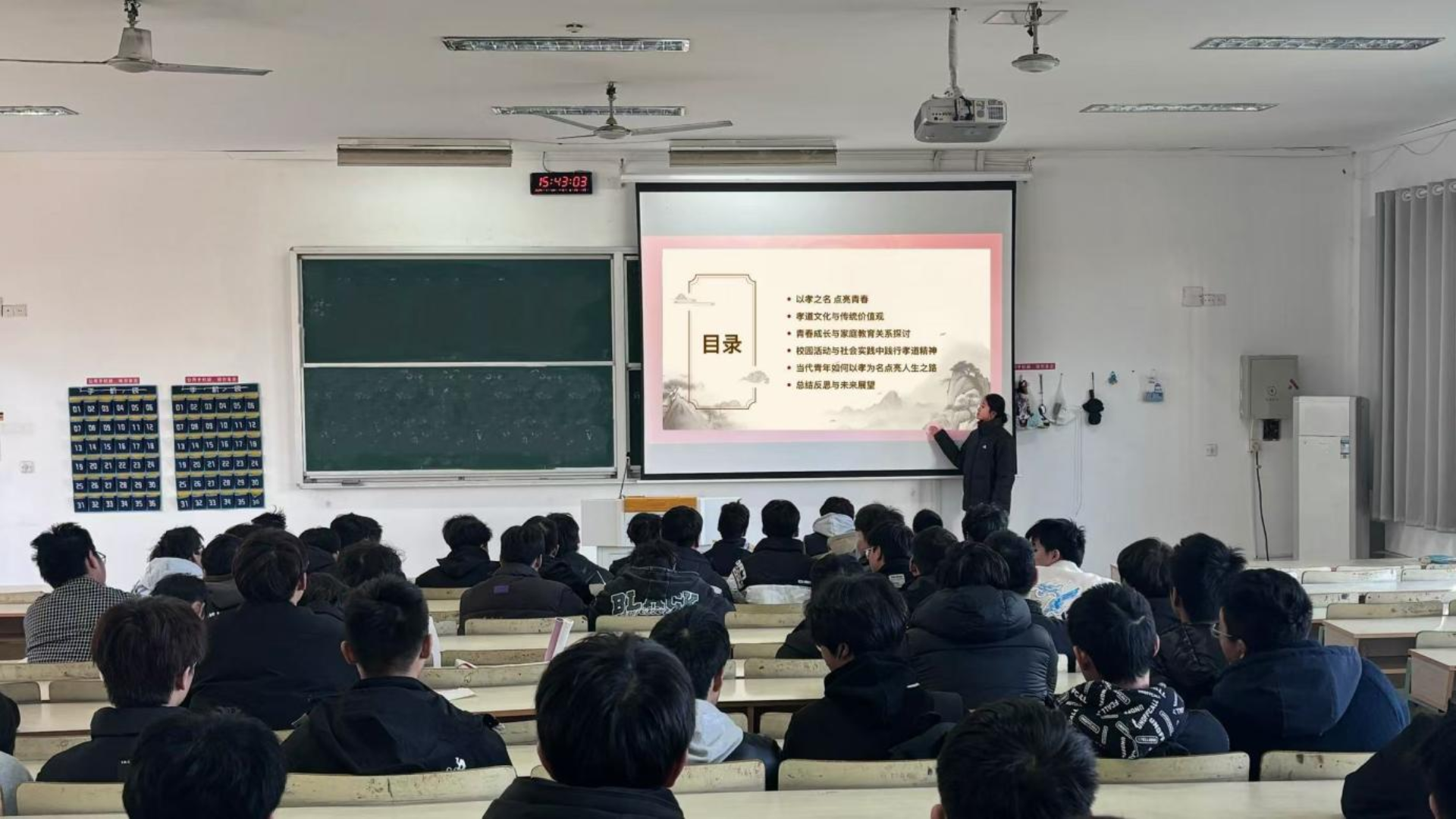 为弘扬中华传统孝道,培育学生感恩之心,春满四合院 民用航空系于12月17日在1303教室举办“以孝之名,点亮青春”主题班会,本次感恩主题班会由吴程彦同学主讲,旨在引导学生在青春时光领悟孝道真谛,让感恩成为成长底色。2024级全体学生参加了此次活动。