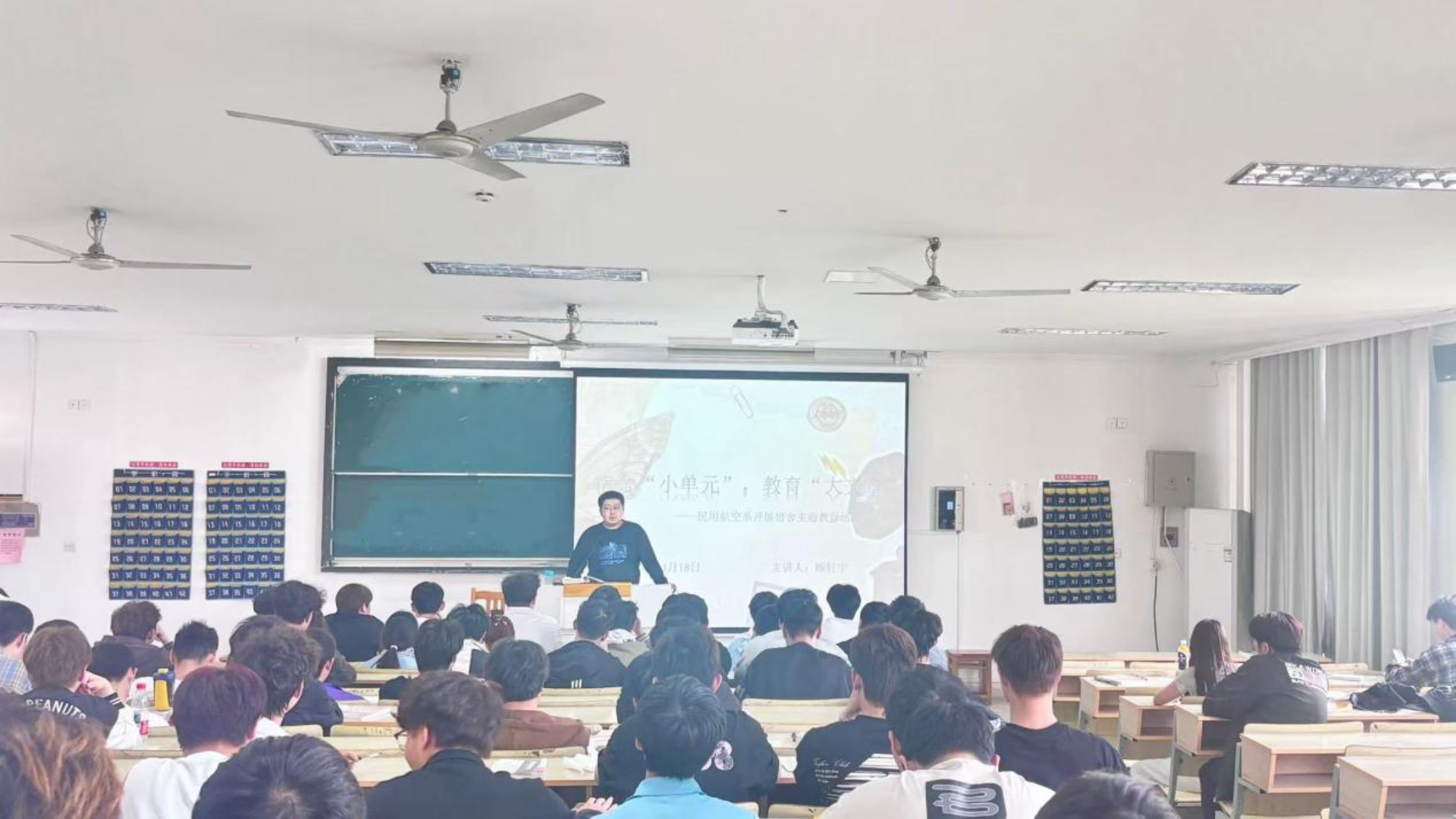 为提升同学们的宿舍生活品质,增强宿舍成员间的凝聚力,民用航空系于4月18日在2204教室组织开展了一场别开生面的宿舍主题教育活动,全班同学积极参与。本次活动由辅导员顾轩宇老师主持。