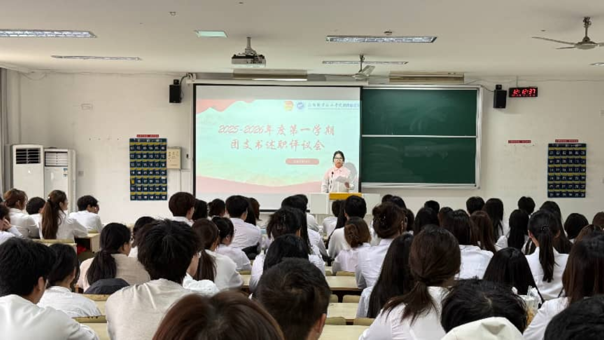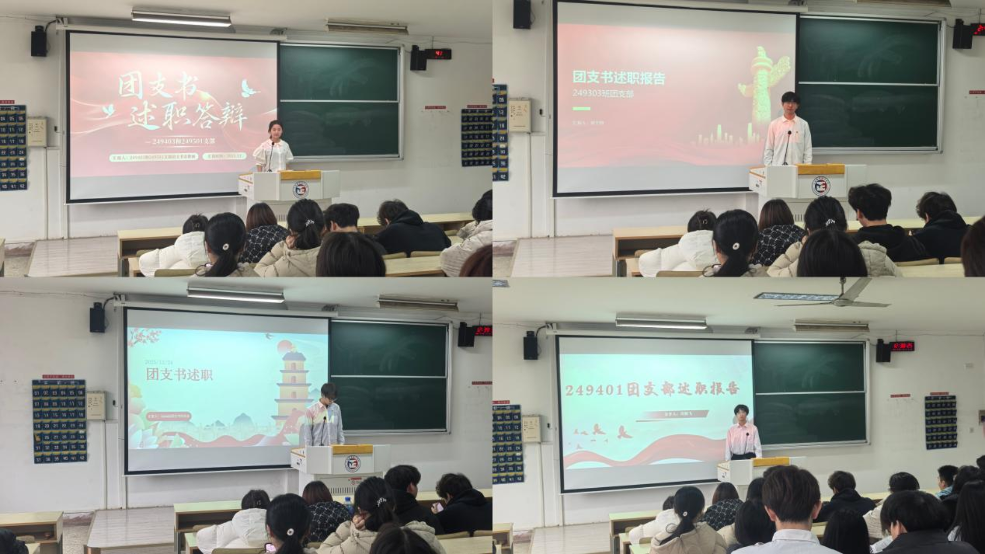 会上,各团支部书记依次登台述职。各位团支书围绕过去一学年支部工作的开展情况,重点汇报了在思想引领、主题团日活动、志愿服务等方面的具体举措与实际成效。述职内容既展示了各支部取得的扎实成果,也坦诚剖析了当前工作中存在的不足,并提出了今后的改进思路与发展规划。