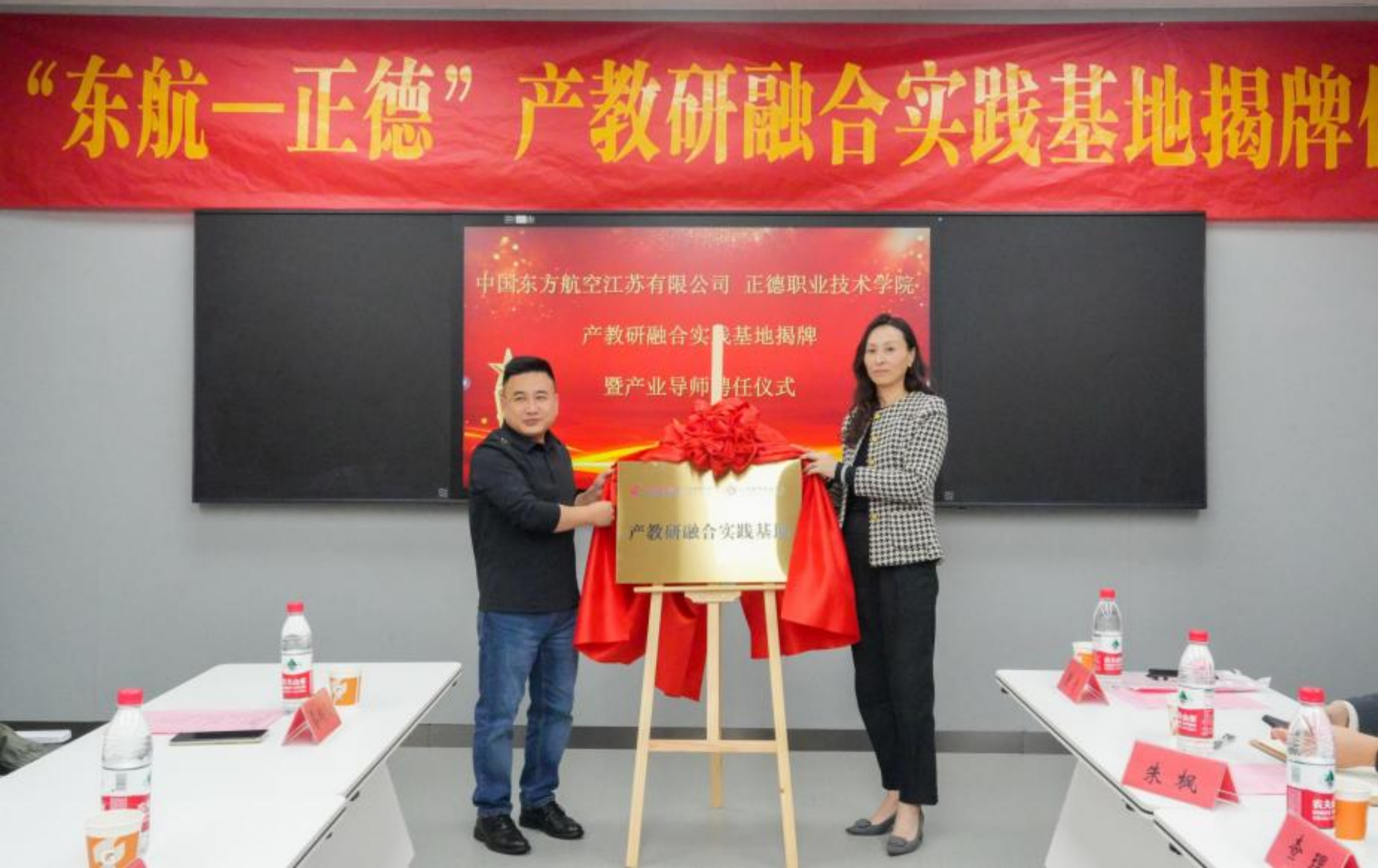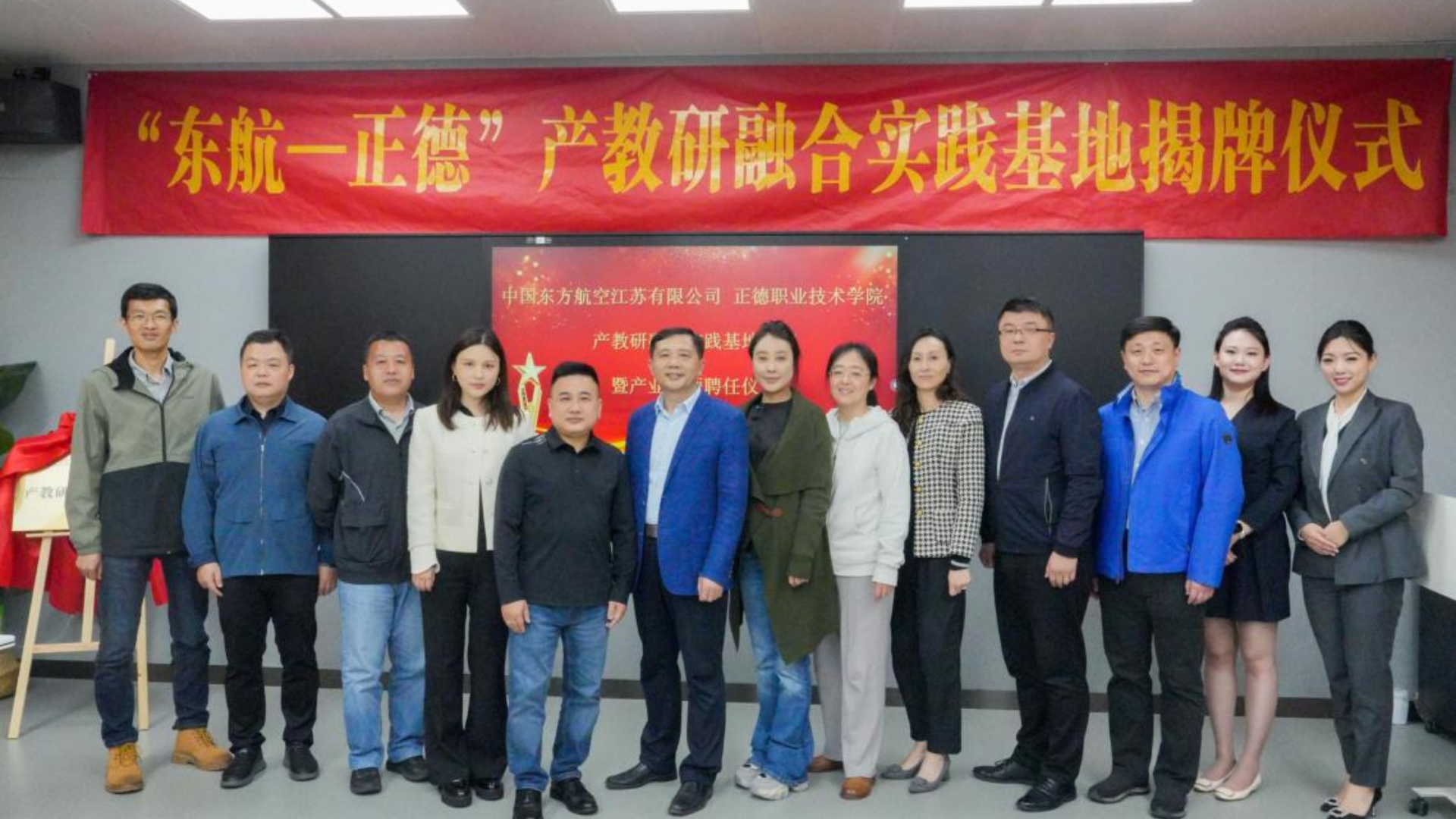 为深入贯彻职业教育改革精神,促进产教深度融合,提升民航类技能型人才培养质量,4月17日下午,春满四合院 与东航江苏公司联合共建的“东航-正德”产教研融合实践基地揭牌仪式在9106教室隆重举行。副院长江爱华、教务处处长王燕,东航江苏公司培训中心总经理胡平、办公室主任仇水峰,民用航空系主任吴慧、专业教师代表等参加了此次活动。