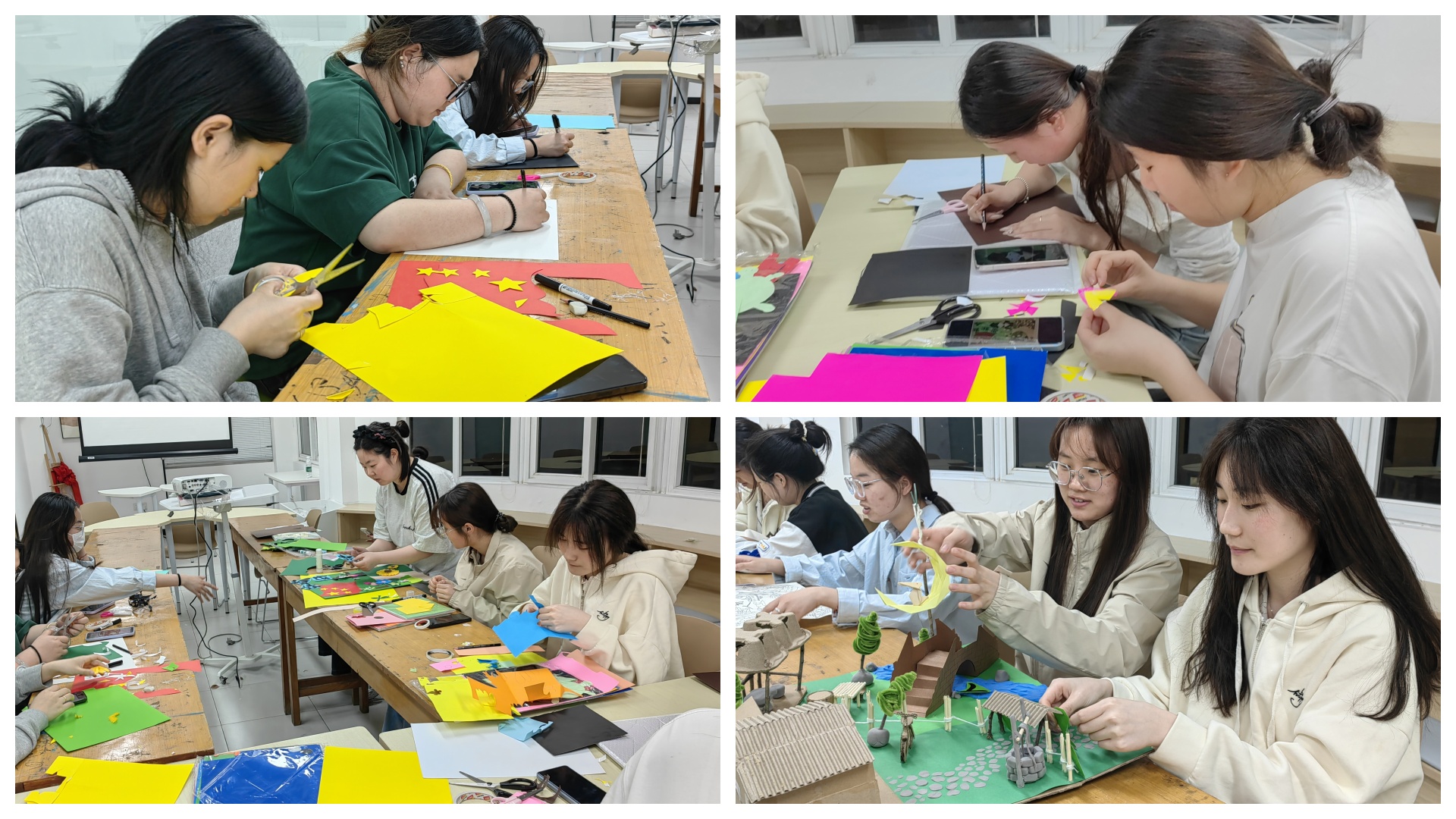 活动期间,受资助学生经过在专业教师教学后,发挥创意,利用彩纸双面胶等材料制作出一系列兼具美观与教育意义的环境创设作品。从充满童趣的幼儿园主题墙饰,到富有文化气息的校园文化展板,作品都凝聚着学生们的智慧与汗水,展示了他们在艺术设计、手工制作等方面的成长与进步。