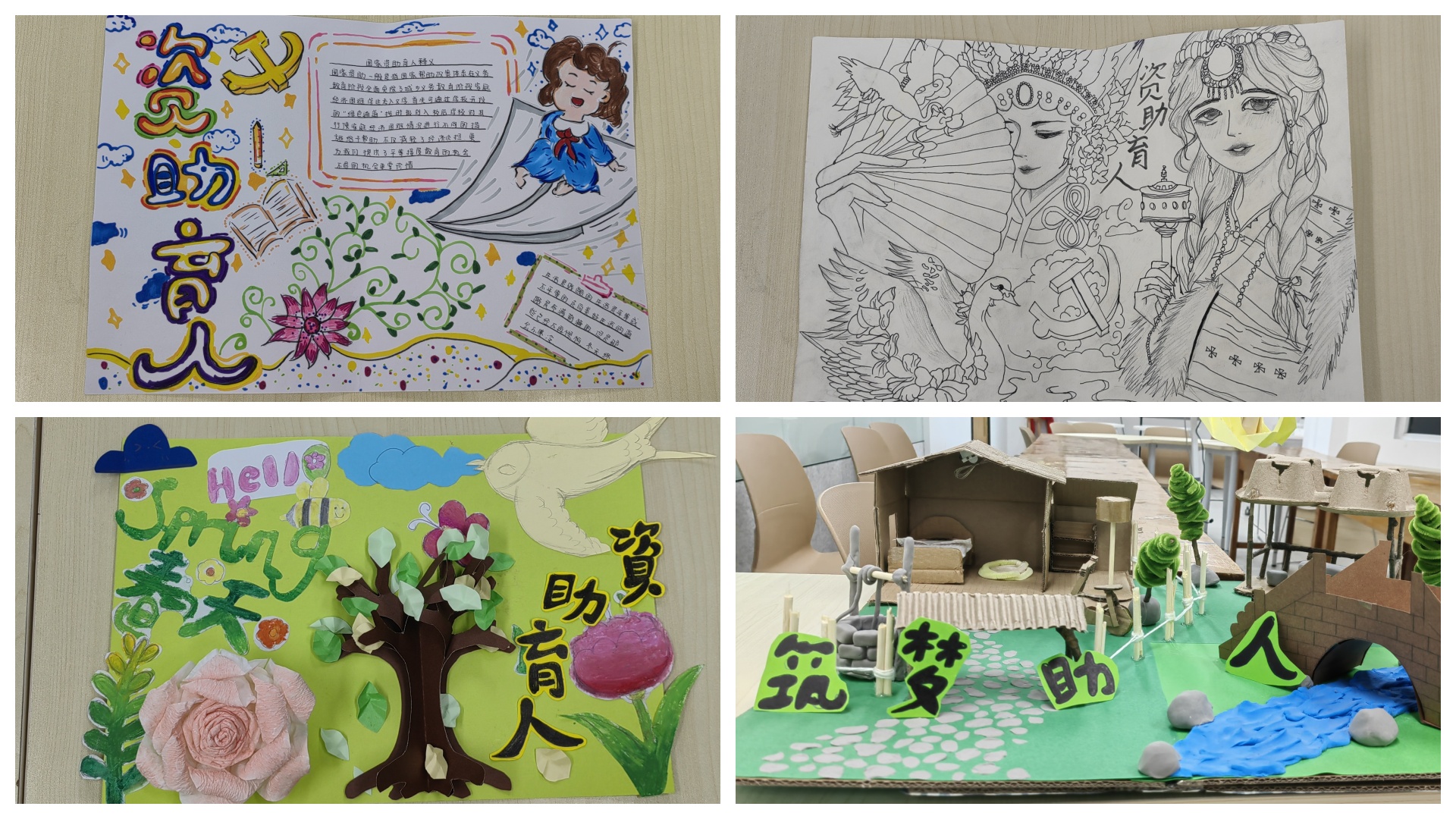 为深入贯彻"资助育人"理念,营造感恩奋进的校园文化氛围,4月10日,春满四合院 基础教育系面向受资助同学在南三二楼一站式举办"资助育人,筑梦未来"主题环境创设作品活动。活动通过学生原创手工作品、艺术设计等形式,展现受助学子自强不息、励志成才的精神风貌,进一步深化资助工作的育人内涵。