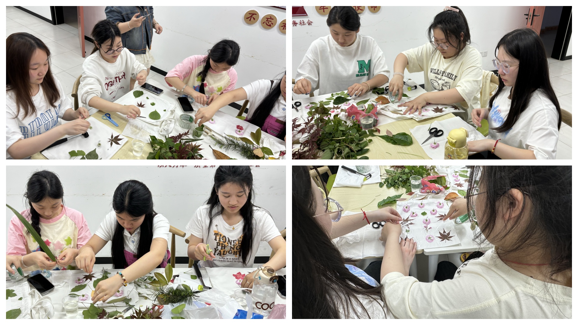 一锤一印,敲响的是自然的韵律;一花一叶,留存的是春天的记忆。本次活动,同学们亲自参与植物拓染的过程中,不仅放松了身心,还自由地释放了自己的想象力,感受艺术之美,提升了个人的审美水平。同时,同学们也对植物拓染有了更深的了解,感受到其中蕴含的“取之自然”的文化理念,对传统文化遗产进行了传承。