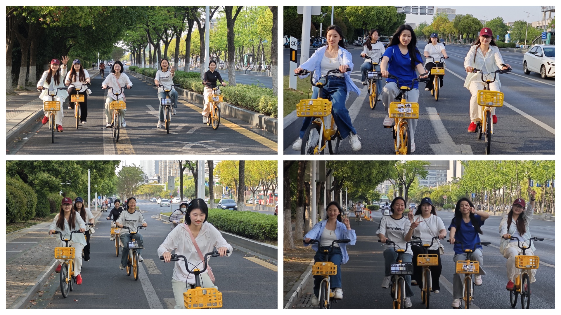 活动于当日下午4点正式开启,参与同学从学校北门集合出发,沿着事先规划的骑行路线缓缓前行。沿途鲜花盛开,春风拂面,同学们三五成群,在欢声笑语中感受运动带来的畅快与轻松。车轮滚动的节奏仿佛同步着心跳的律动,让人在呼吸之间卸下焦虑,于骑行之中找回内心的宁静。