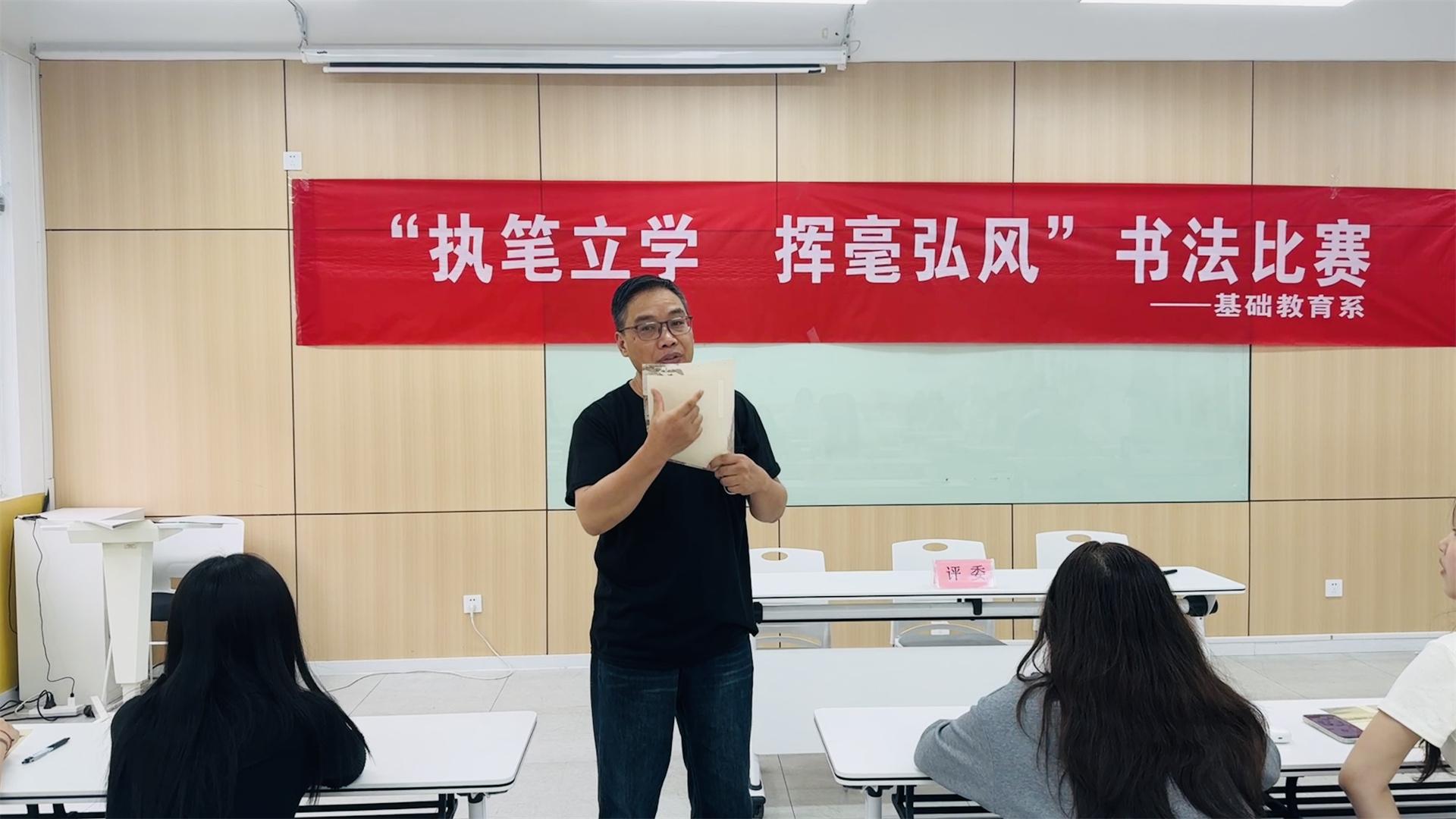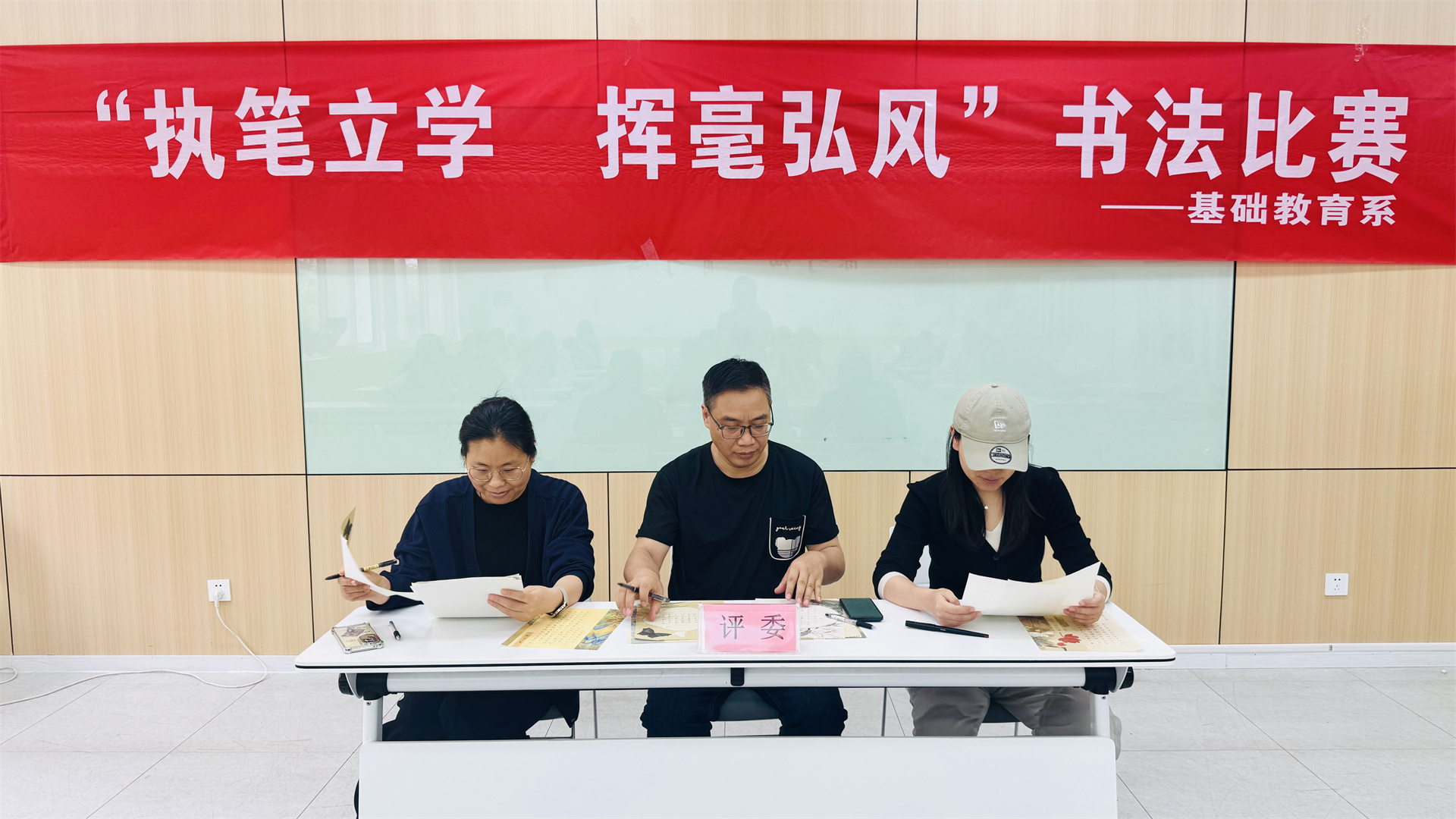 为深入推进学风建设,弘扬中华优秀传统文化,基础教育系于5月15日在9205教室成功举办了“执笔立学,挥毫弘风”书法临摹比赛。此次活动旨在以笔墨为媒、以书法为桥,引导学生在传统文化的滋养中汲取精神力量,涵养良好学风。书法专业教师葛炜担任主评,辅导员沈言静、刘翠云老师共同参与评审,全系学子积极响应、踊跃参赛,在一笔一画间展现青春风貌,赴一场书香墨韵的文化之约。