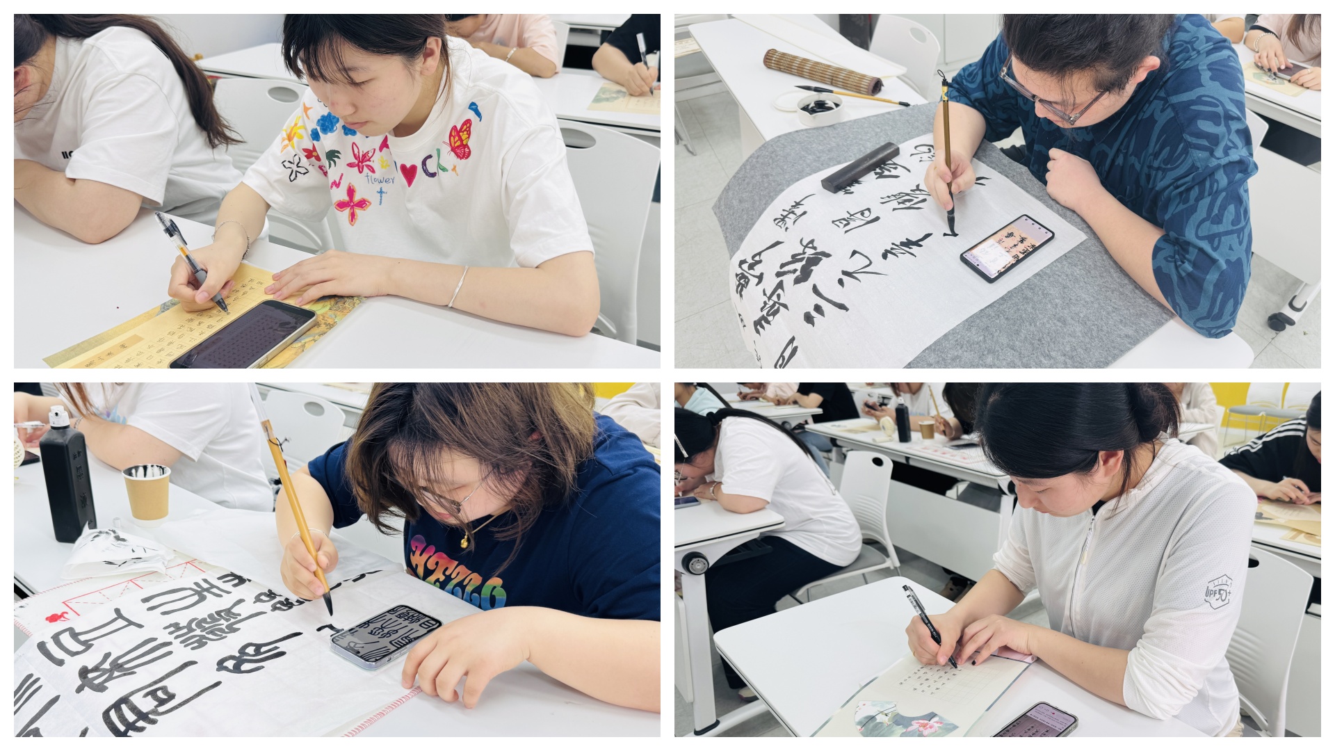 本次比赛分为硬笔和软笔两个类别,参赛学生全神贯注、沉静专注。硬笔书写者笔锋沉稳,字迹端正清秀,结构严谨;软笔参赛者挥毫洒墨,或遒劲有力,或潇洒飘逸,墨香氤氲间,一幅幅作品跃然纸上,彰显出扎实的书法功底与浓厚的文化情怀。