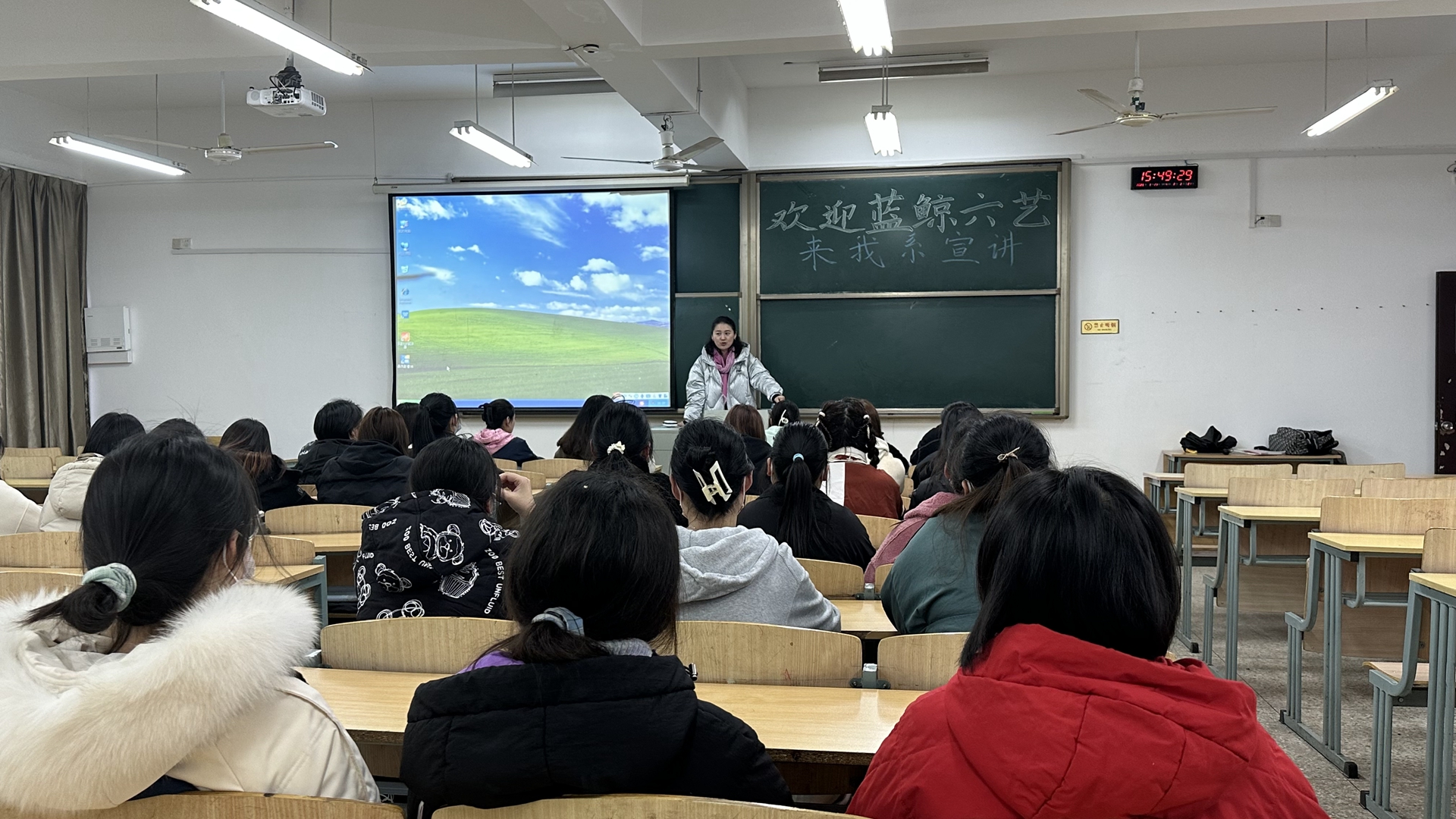 宣讲结束后谢楚老师请对播音主持专业感兴趣的同学留下并进行订单班选拔。同学们踊跃报名,最终选取魏雨菲等5名同学为主持人班学员。
