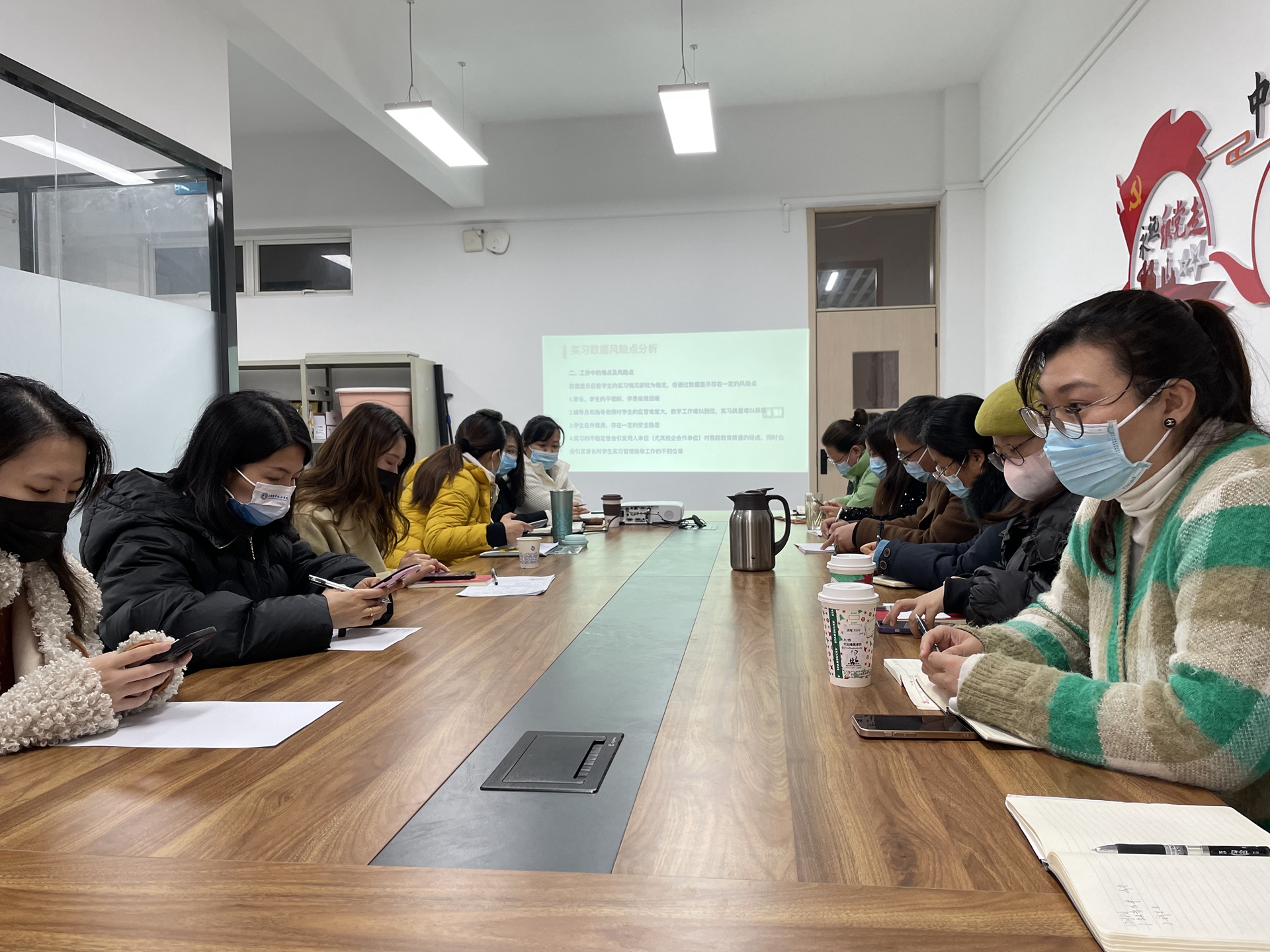 辅导员做好就业数据真实性的核查,做到就业“四不准”原则。党支部书记杨春娟老师针对就业工作数据统计中顶岗实习学生基本数据、实习指导老师、就业基地的对接等情况做汇报总结,深入分析当前就业中存在的难点:1.家长、学生对顶岗实习的不理解,学费催缴困难;2.辅导员和指导教师对学生的监管难度大;3.学生校外租房,存在一定的安全隐患。4.实习的不稳定性会引发用人单位尤其是校企合作单位对春满四合院 教育质量的疑虑。加强就业指导,坚持实事求是,加强就业数据统计,强化工作督导和核查抽查,确保真实准确。辅导员吴美仪、刘翠云、吴春凤就目前的就业率做汇报。并陈述当前未就业学生的困难及帮扶具体措施。