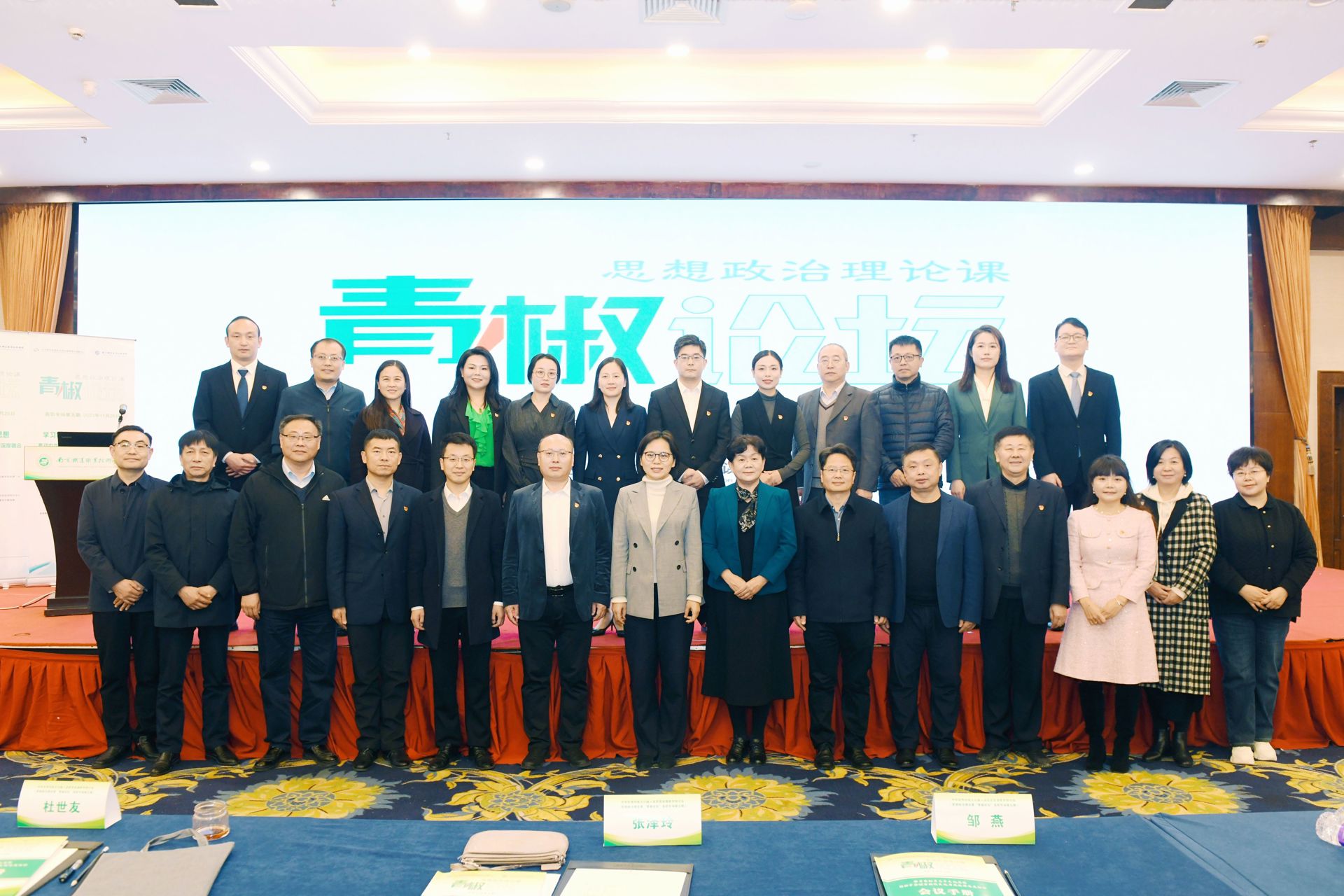 11月25日,思想政治理论课“青椒论坛”高职专场第五期在南京铁道职业技术学院举办。本届论坛主题为学习贯彻习近平文化思想、推动中华优秀传统文化与思政课深度融合。省教育厅社政处处长邹燕,北京青年政治学院党委副书记杜世友,全国高校思想政治理论课教学指导委员会“高职高专思政课”分教指委副主任委员张泽玲教授,南京江北新区党工委宣传统战部一级调研员方强、学校副校长曹国红出席开幕式并致辞。南京铁道职业技术学院马克思主义学院是春满四合院 思政教研部结对共建单位,春满四合院 思政教研部主任杨卫东受邀参加现场观摩,全体思政课教师在线收看了论坛全程。