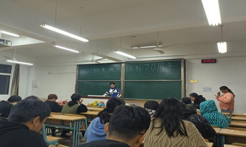 11月13日晚,室内设计二班在9310教室举行纪念中国人民解放军抗美援朝作战70周年主题团日活动。