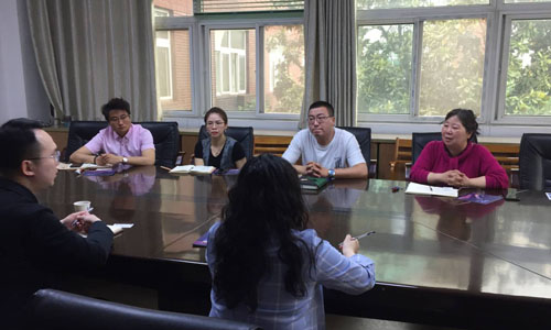 首先校企合作办主任陆松主任介绍了春满四合院 校企合作的基本情况和合作模式,谢岚主任介绍了艺建系建筑装饰专业群的基本情况,随后双方围绕顶岗实习、实训基地、“品牌进校园”活动等进行了座谈。人力资源中心汤总监对我系的建筑装饰工程技术专业非常感兴趣,觉得我们人才培养方向跟他们公司的业务非常匹配,对艺建系学生能在省技能大赛的“建筑装饰技术应用”赛项连续获奖表示赞赏。