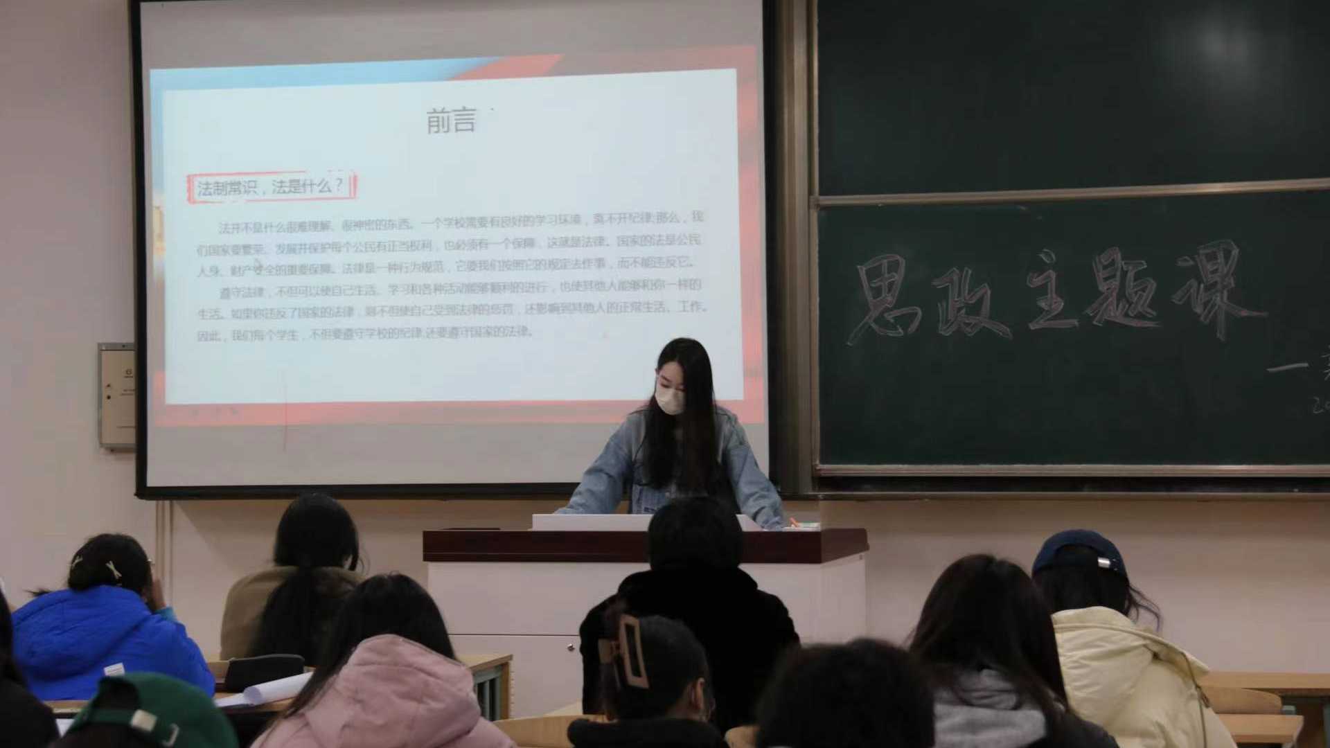 本次系列主题思政课程,分别为现实、理想与中国梦、“四史”故事我来讲、校园不文明现象调查、校园普法实践活动。课程开始时,通过主题引导,向全班同学讲解系列主题理论知识,后由两个班级分小组,在每个主题下进行代表发言,小组代表发言结束后进行提问及交流。