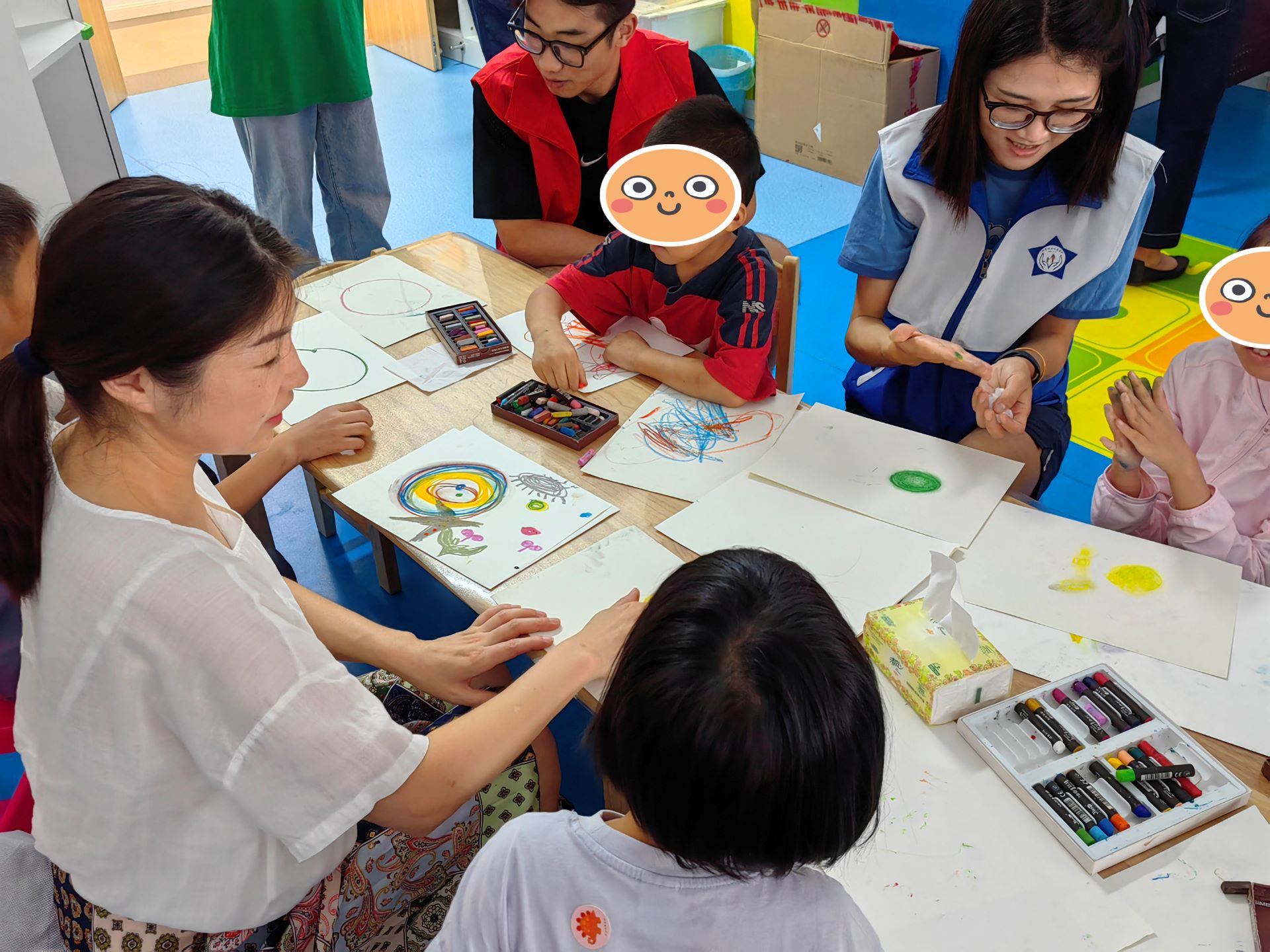 活动启动前,正德学院艺术设计与建筑工程系党支部组织四位优秀教师徐嘉嘉、周倩、刘凤、沈剑前往江宁区海之星儿童康复中心,与南医大老师们一起讨论、策划、实地考察,为绘画活动制定了详细的内容与流程。2023年8月24日,“‘艺’ 颗红星——关爱孤独症儿童公益活动”终于正式拉开帷幕。