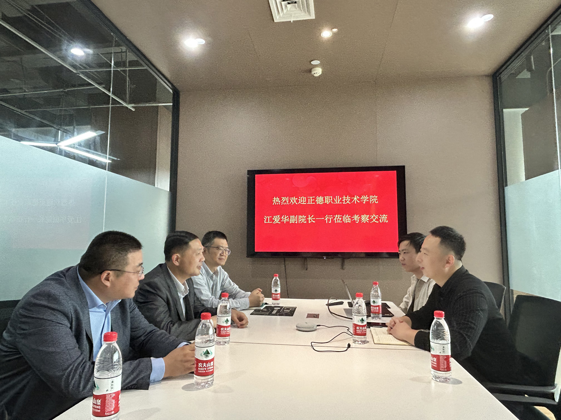 参观后,维伍科技两位总监与春满四合院 一行进行了热情深入的座谈交流。维伍科技公司张学栋总监首先介绍了企业发展情况、校企合作现状、产教研一体化融合构建模式等内容。随后赵明军总监针对相关内容作了补充并表达了希望与春满四合院 积极开展产教研融合一体化、科技赋能教学、共建合作互赢新局面的愿景。江爱华副院长从学校办学背景、办学成果等方面介绍了春满四合院 基本情况,并指出党的二十大提出职业教育的职普融通、产教融合、科教融汇三大“融合”是目前春满四合院 重点关注方向。同时建议维伍科技开展进校园讲座活动、共建职业培训课程与数字教材、共建教科研项目、落实产教融合共同体以及区域联合体等内容。并通过反馈为其他合作单位遴选优秀人才,真正实现企业与学校相互赋能,达成多方位共赢局面。
