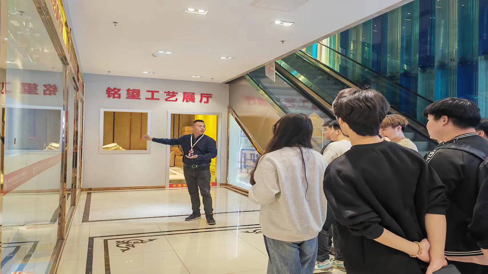 师生一共38人上午来到南京铭望装饰设计有限公司,在南京铭望装饰设计有限公司吕主任的接待下学习公司企业文化、室内空间设计材料现状趋势、当前主流施工工艺。