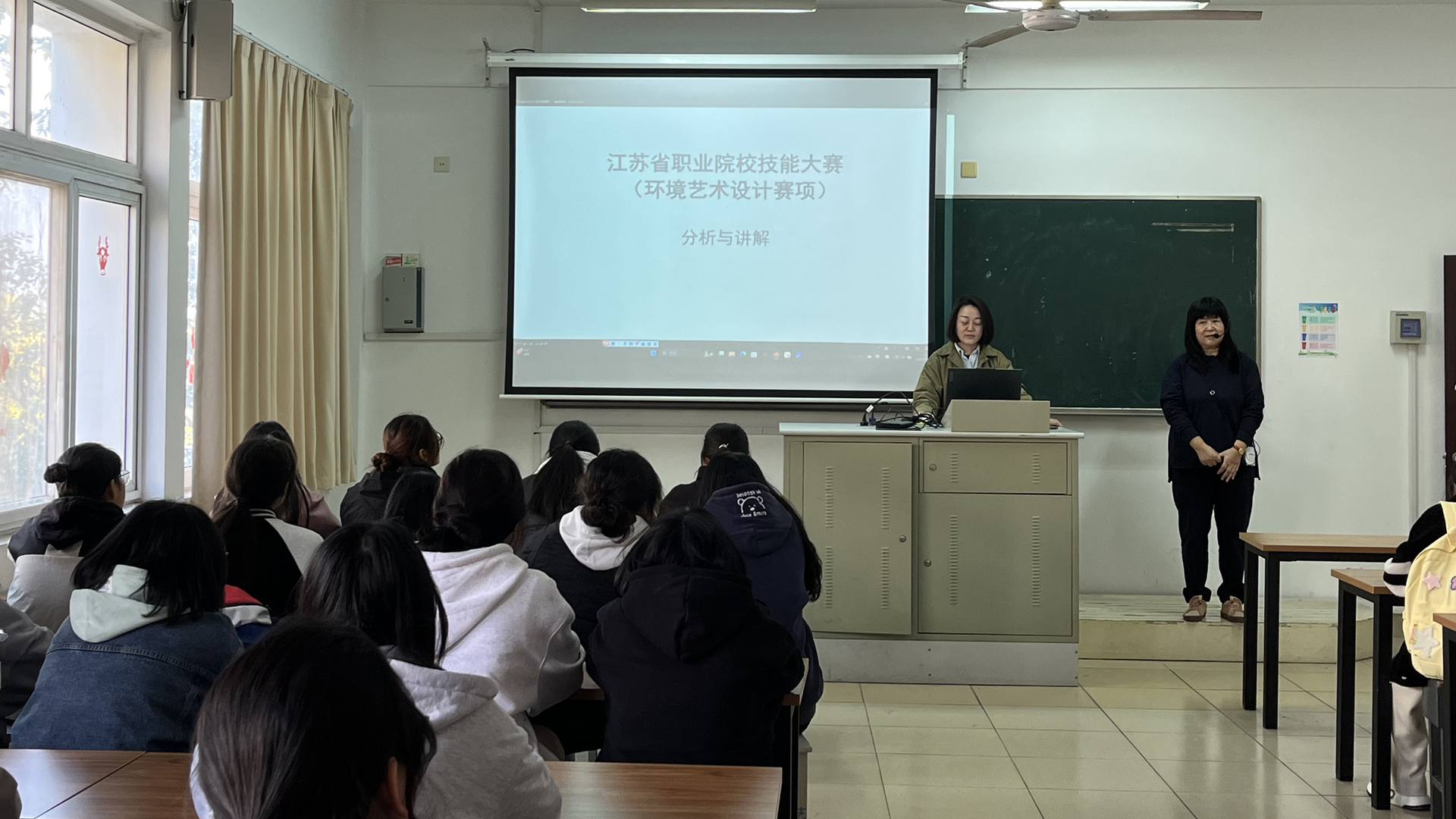 为不断提高学生实践技能和创新能力,展示专业教学成果,选拔参加省赛优秀选手,2023年11月20日,环境艺术设计专业培优班在班主任钱抒老师和辅导员王思思老师的精心组织下,开展了一期以江苏省职业院校技能大赛分析的宣讲活动。
