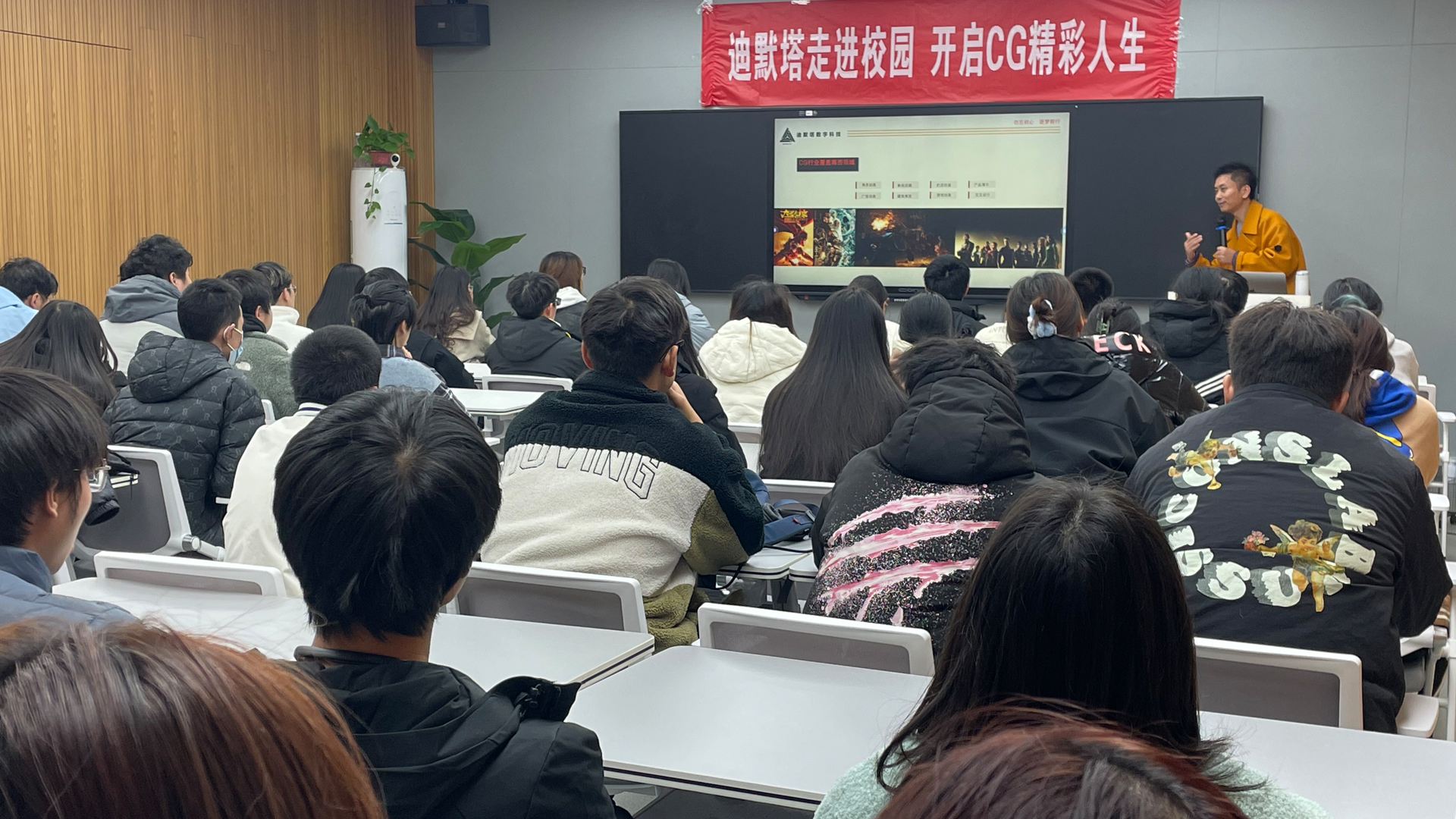 南京迪默塔数字科技有限公司是一家从事软件和信息技术服务的公司,业务范围涵盖游戏开发、影视后期、影视包装、影视广告、企业宣传及纪录片制作以及职业教育等相关业务。讲座中,迪默塔以企业多年实战经验,为学生讲解了最新的行业资讯,鼓励大家有规划的提前学习专业软件,夯实基础,多与企业交流,掌握最实用,最前沿的技术,并现场分享了企业自主研发的教学视频。