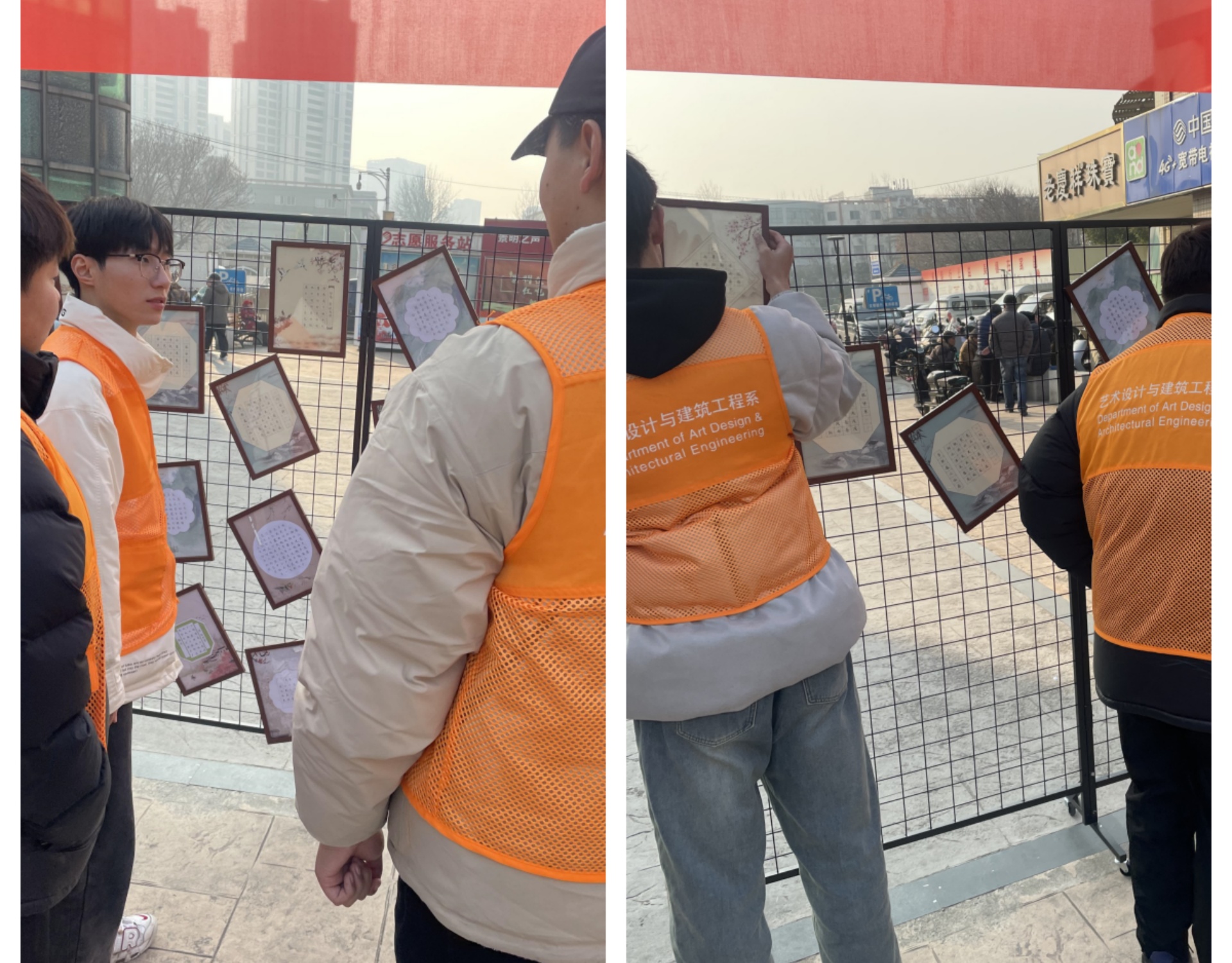 此次文化艺术作品展由景明佳园社区举办,以景明佳园红旗广场为展示中心,我系提供了展览的书画作品,同时我系学生志愿者组织维护展览现场,做好引导讲解工作。所展览的书画作品则是我系学生在系部团总支的组织下,为丰富系部学生的文化艺术生活,营造良好的校园文化氛围,结合专业特点展现我系以文化人、以文育人的实践担当,由系部学生进行书法、绘画,尽显古诗词歌赋之美。在社区展览期间,吸引了社区居民纷纷驻足围观,获得一致好评。