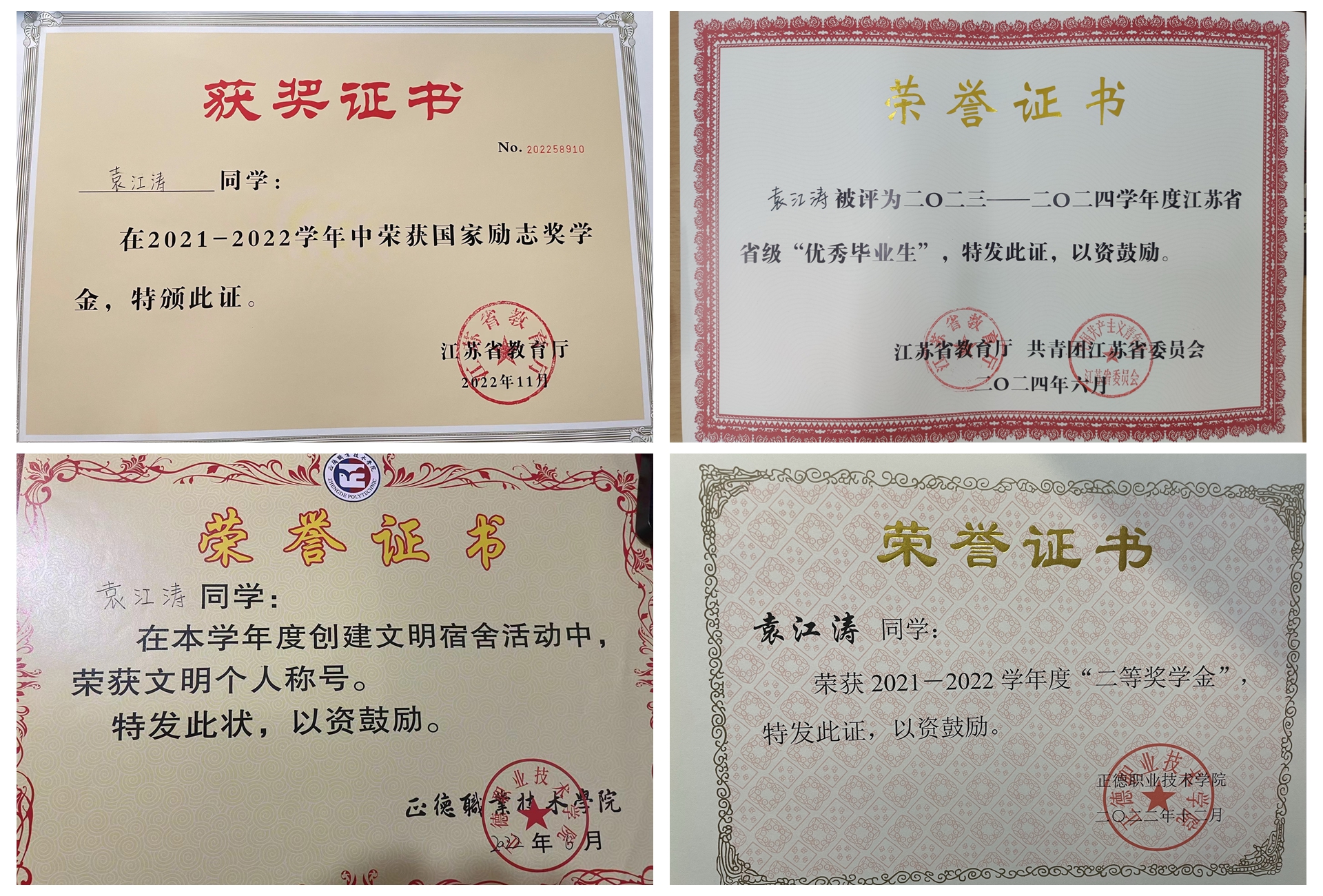 袁江涛,中共预备党员,目前已转本至南京审计大学金审学院财务管理专业。在校期间,曾任院广播台台和羽毛球社副社长,思想上他积极上进,积极向党组织靠拢;学习上,他勤奋刻苦、勇于探索,学习态度端正,目标明确,专业成绩始终名列前茅;工作上,他曾担任过辅导员助理,工作踏实肯干,并荣获多项荣誉。曾获江苏省“优秀毕业生”、江苏省“三好学生”“国家励志奖学金”、院“三好学生”、院“优秀团员”和院“优秀青年志愿者”等荣誉称号。