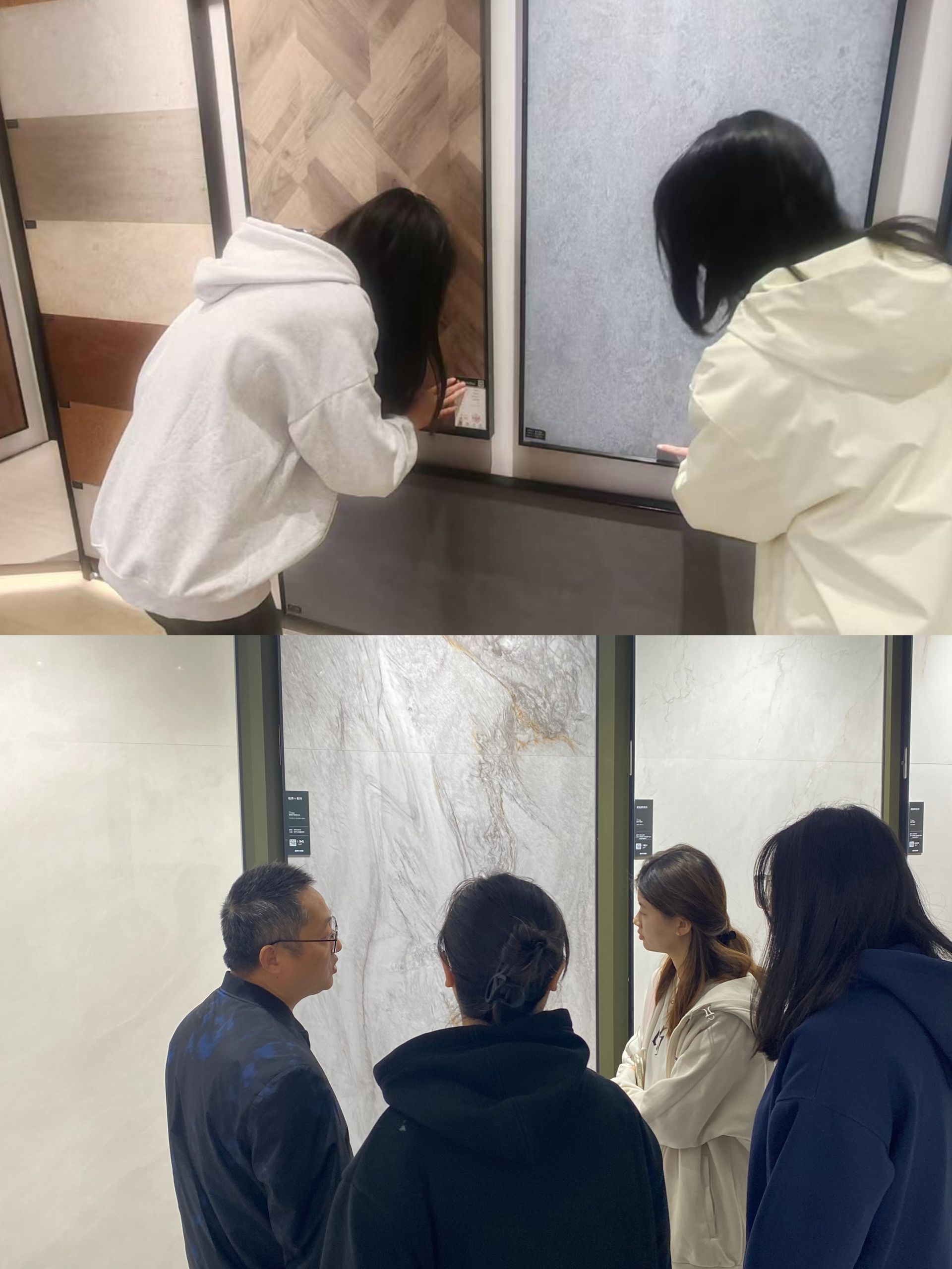 调研期间,同学们不仅聚精会神地聆听了商家对产品的细致讲解,还亲手触摸、细致观察了各类材料的质感、纹理与色彩。学生们积极发问,与商家围绕材料的性能、价格、施工复杂度等话题展开了深入的探讨。与此同时,马亮老师紧跟现代设计潮流,为学生们生动阐述了不同材料在家装中的实际应用与设计技巧。