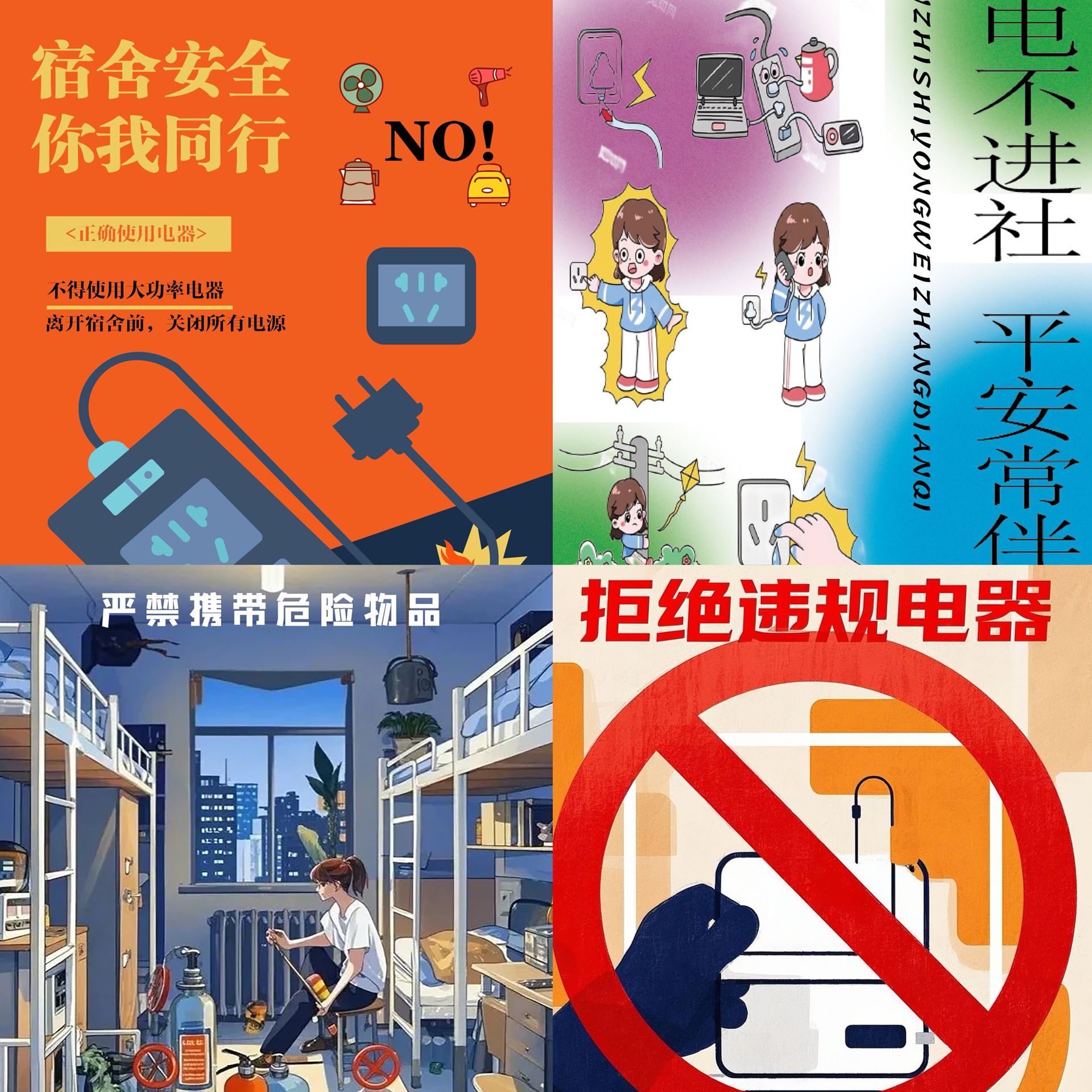 为加强宿舍安全管理,确保同学们的生命财产安全,辅导员唐晨老师组织2023级数媒专业同学开展了“违规电器安全绘”的海报设计活动,通过将生动形象的海报张贴在宿舍区域的方式,引导同学们遵守宿舍管理规定,增强安全意识,共同维护宿舍的安全与稳定。