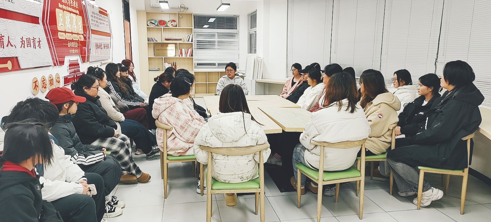 为解决同学们在学业、生活上的多样需求,充分发挥宿舍育人功能,12月8日晚,辅导员朱建萍老师邀请2023级动漫制作技术专业优秀学姐赵仁敏在南2公寓一站式中心给2024级同学们做分享经验,精准针对同学需求,面对面解答同学问题,通过组建全新的朋辈团体,营造积极、健康的宿舍生活氛围。