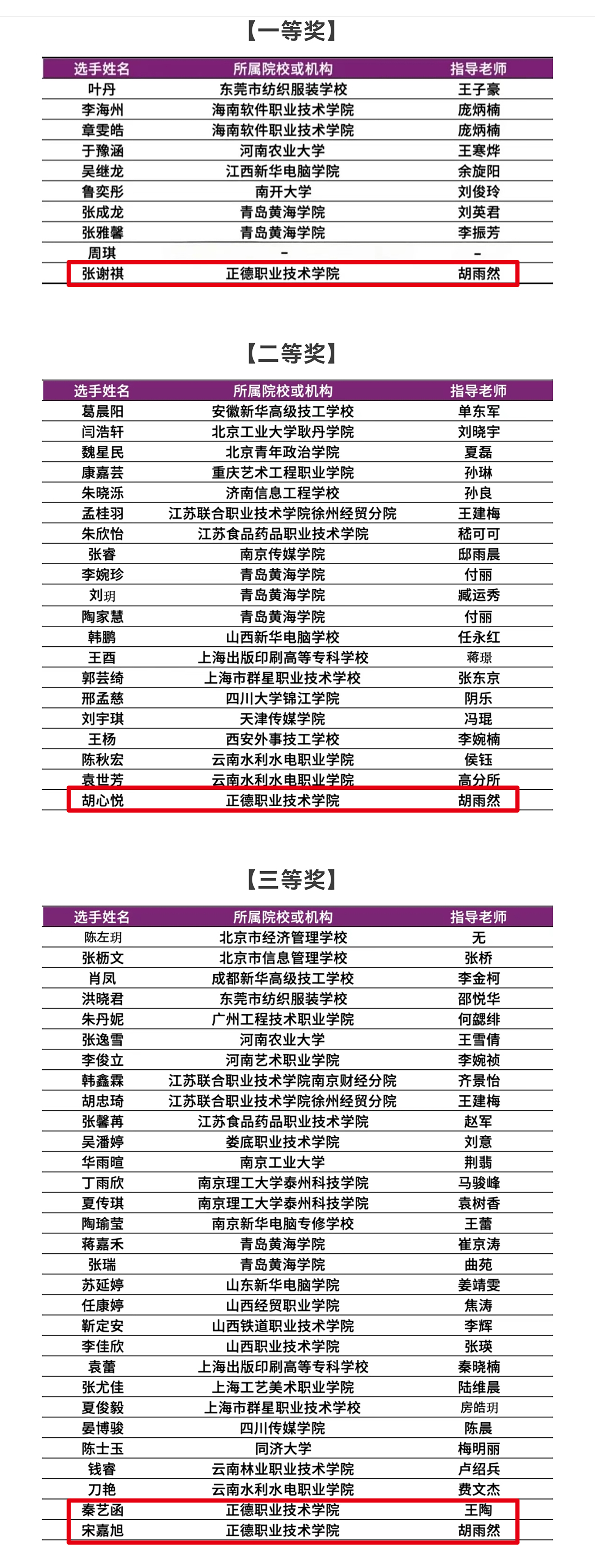 中国区总决赛获奖名单如下:(名单以选手姓氏首字母顺序排列,排名不分先后)。