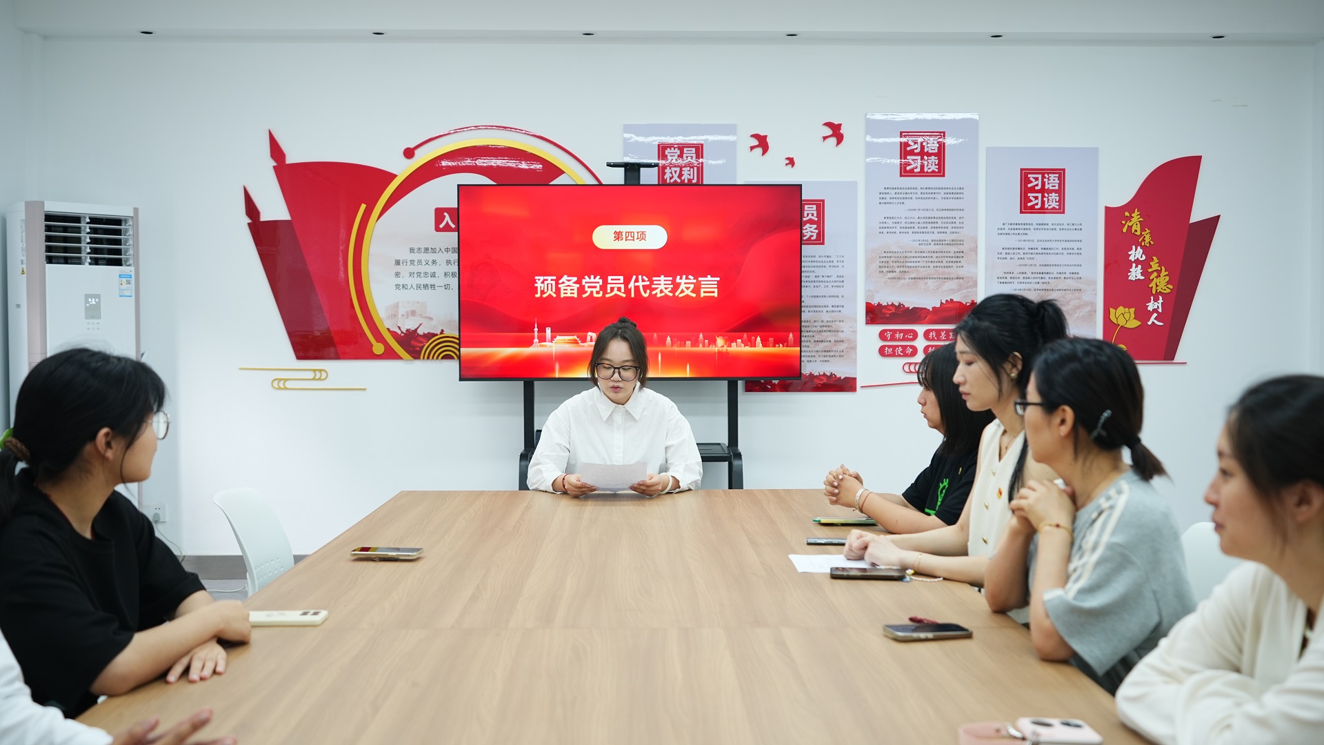 在新党员代表发言环节,徐婧怡激动的分享着自己从递交入党申请书到成为预备党员的心路历程,言语间满是对党的感恩与向往,以及未来为党奉献的坚定决心。