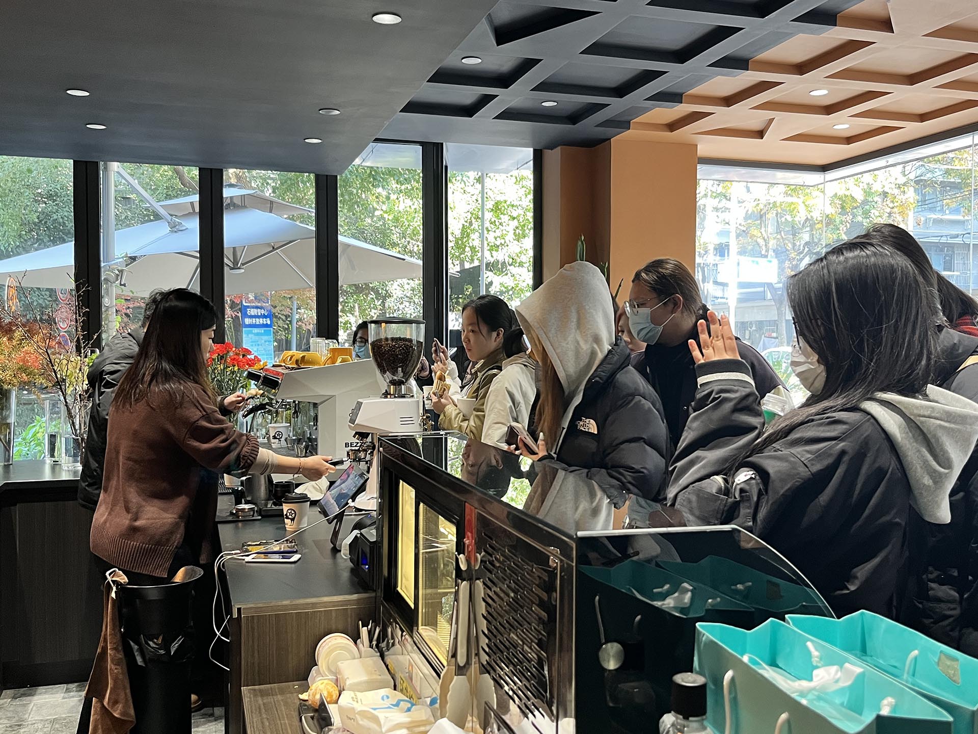 智檬智能科技有限公司赵总热情接待,并为学生做了企业介绍和企业文化宣讲。她与学生们热情互动,并亲手为大家制作咖啡。学生们认真听取了企业介绍,询问自己关心的问题,进行了现场的拍摄和取材。