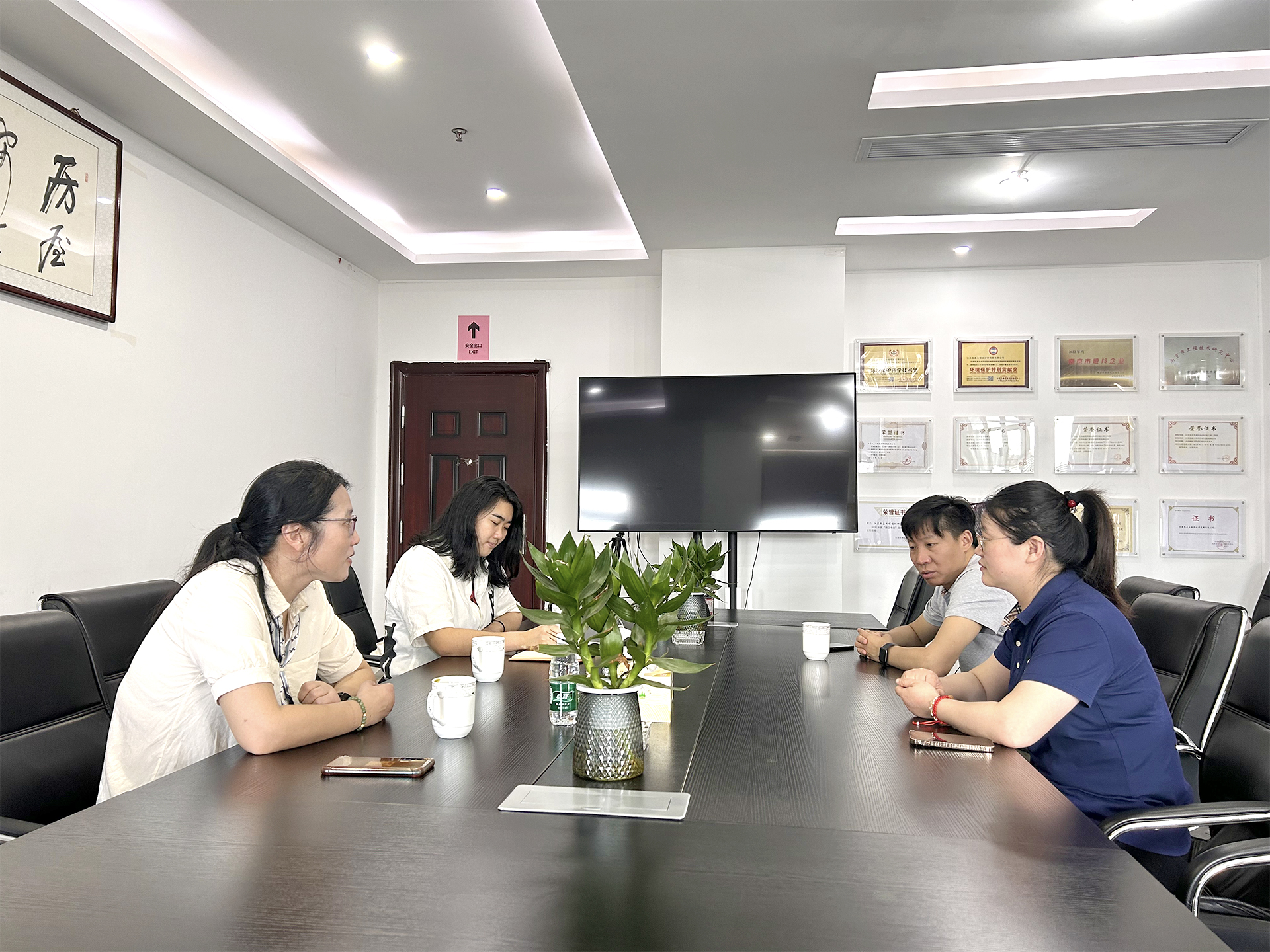 校企双方的研讨交流中,王卿义董事长介绍了公司目前主营的业务,结合公司的需求谈到企业对人才培养的一些建议,如专业课程的设置需考虑就业的需求。建筑行业的项目存在多样性,非常需要拥有多种技能的复合型人才,建议开设一些行业需求量比较大的课程,如建筑安全检测等;公司非常看重学生的学习能力和工作的毅力,欢迎成长型的学生来公司实习。王董事长还表示,公司非常注重员工的学历和技能提升,鼓励员工考取各类职业证书,并且建议学校将考证纳入到课程教学中,如电工证、木工证等证书对于企业都很有用。校企合作办的王青云老师针对企业的用人机制、对实习生的安全保障及薪资待遇等方面和公司进行了深入交流,三名老师对公司人性化的企业管理文化深有感触,非常庆幸学生能够有机会到拓嘉工作、学习。