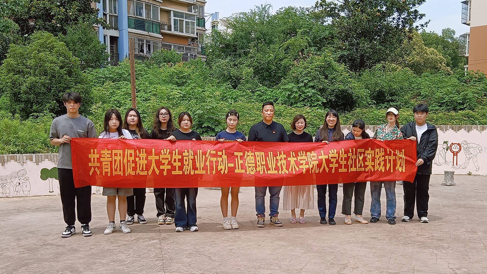 6月16日周五,艺建系党支部书记书记陈宏波带领参与墙绘的师生,请社区李正红老师对墙绘进行正式验收,师生、社区代表一起在墙绘作品前留下了纪念照片。