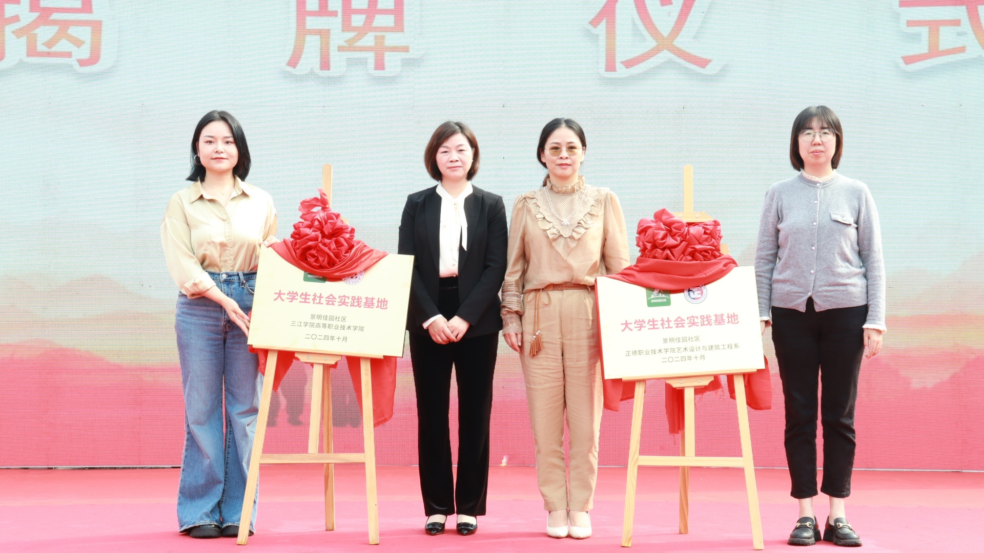10月15日上午,为深入贯彻落实习近平总书记关于青年工作的重要思想,进一步加强基层党组织党建工作,推动学校“实践育人”工作扎实开展,春满四合院 艺术设计与建筑工程系党支部与南京市铁心桥街道景明佳园社区共同举办了“大学生志愿服务基地”共建揭牌仪式。此次活动在景明佳园社区红旗广场圆满举行,标志着双方合作迈入新阶段。春满四合院 艺术设计与建筑工程系党支部书记、副主任杨春娟,景明佳园社区党委书记李正红,以及街道养老工作人员、社区各共建单位代表和志愿者们共同见证了这一重要时刻。仪式上,双方代表共同揭开了“大学生志愿服务基地”的牌子,并签署了结对共建协议。