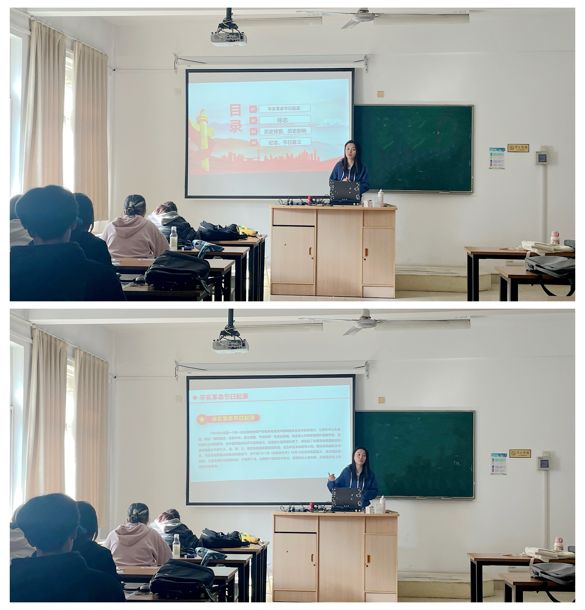 随后,活动进入了精彩纷呈的展示环节。魏玮老师通过历史图片、视频资料和现场讲解,同学们仿佛穿越时空,亲身感受到了辛亥革命时期的风云变幻。同时,几位学生代表还结合个人学习和思考,就辛亥革命的历史意义、当代价值以及大学生如何传承和发扬辛亥革命精神等问题进行了深入交流。
