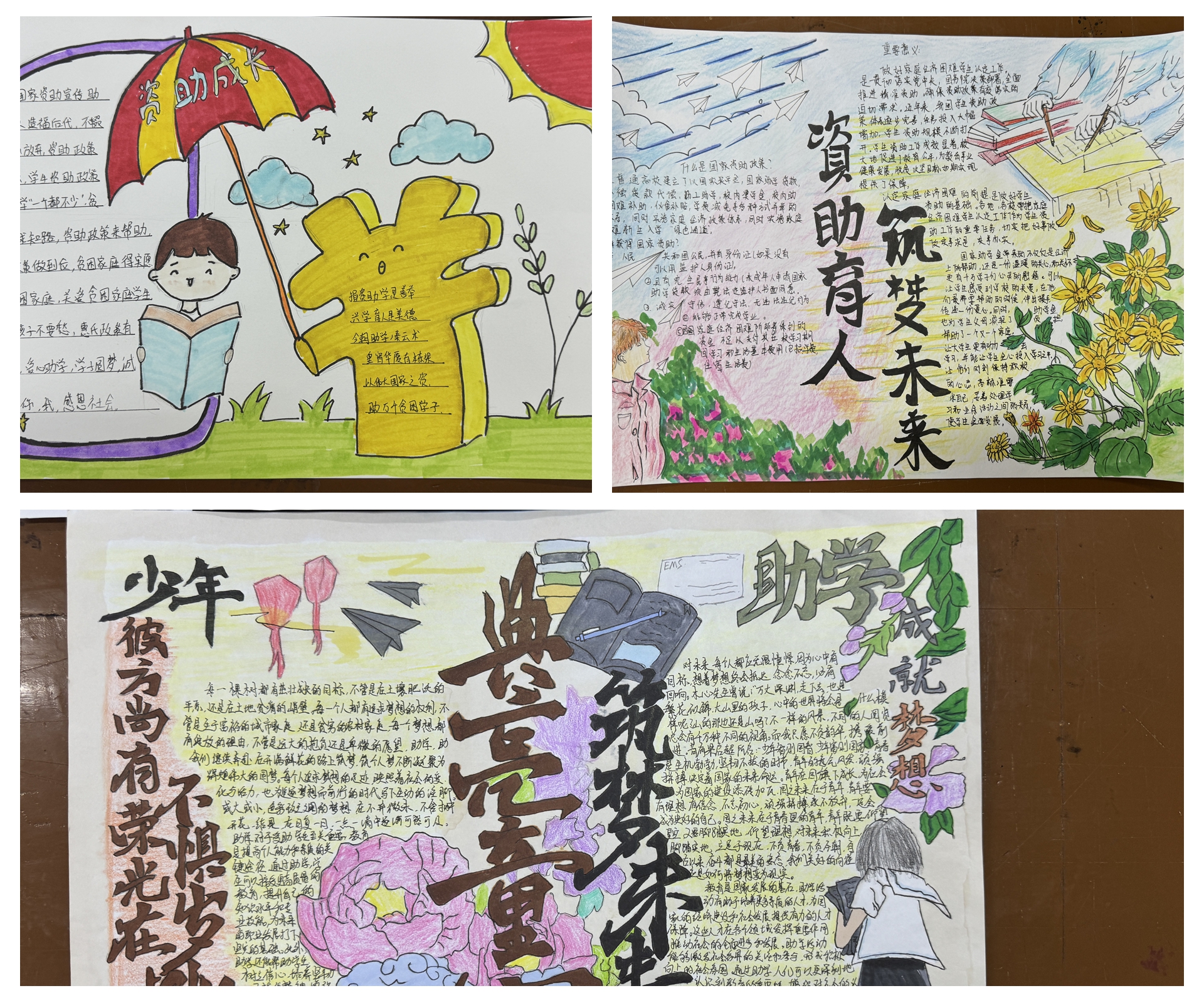活动自启动以来,便吸引了大量获得资助学生的热情参与。他们围绕资助育人的主题,精心策划、细致创作,用一幅幅色彩斑斓、图文并茂的手抄报,生动展现了国家资助政策对家庭经济困难学生的关爱与支持,以及受助学生心怀感恩、奋发向上的精神风貌。