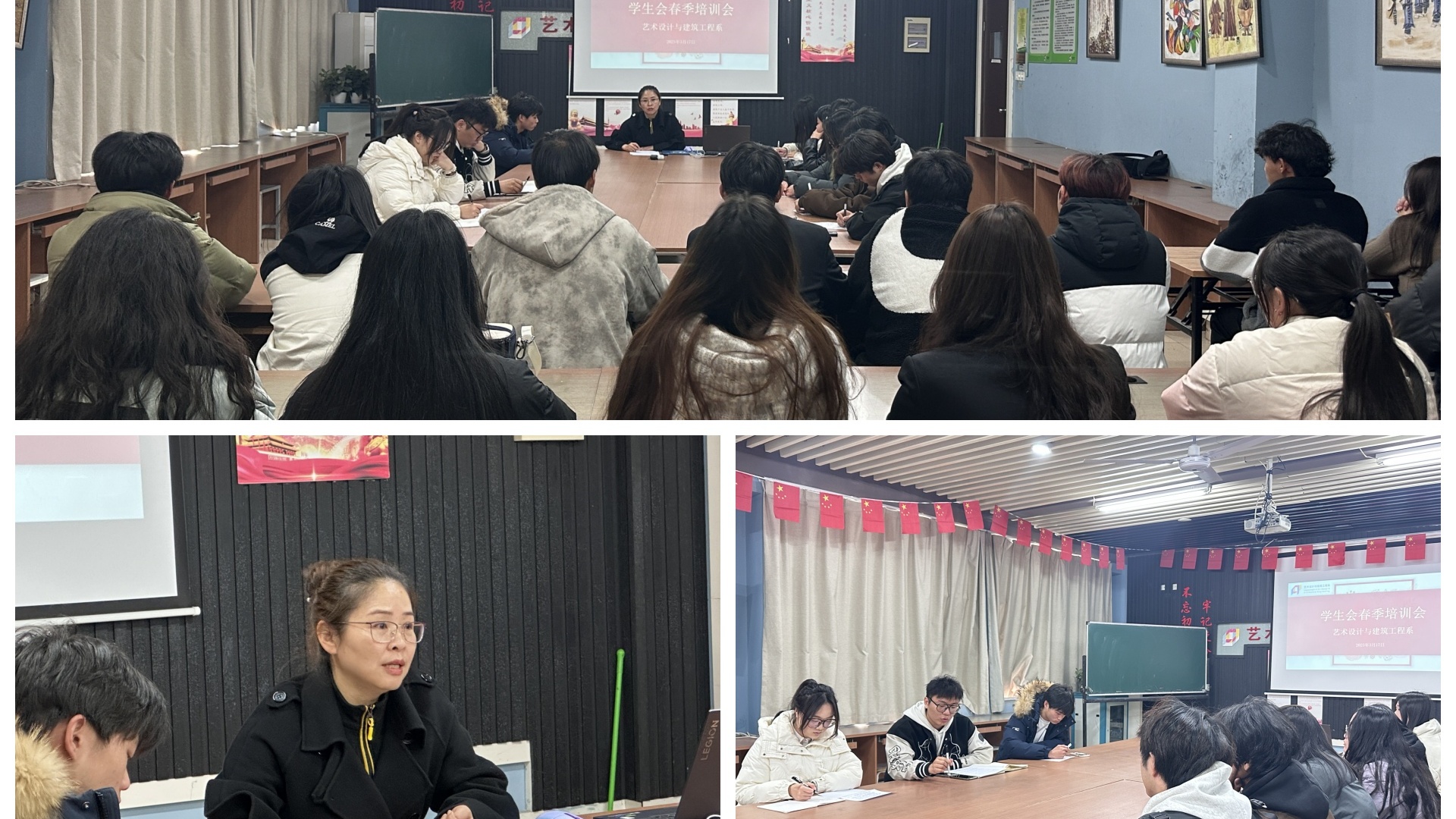 3月17日中午,艺术设计与建筑工程系学生会在8204会议室召开2025年春季培训会。系党支部书记杨春娟、系团总支书记崔杰、学生会全体成员参加了此次培训。
