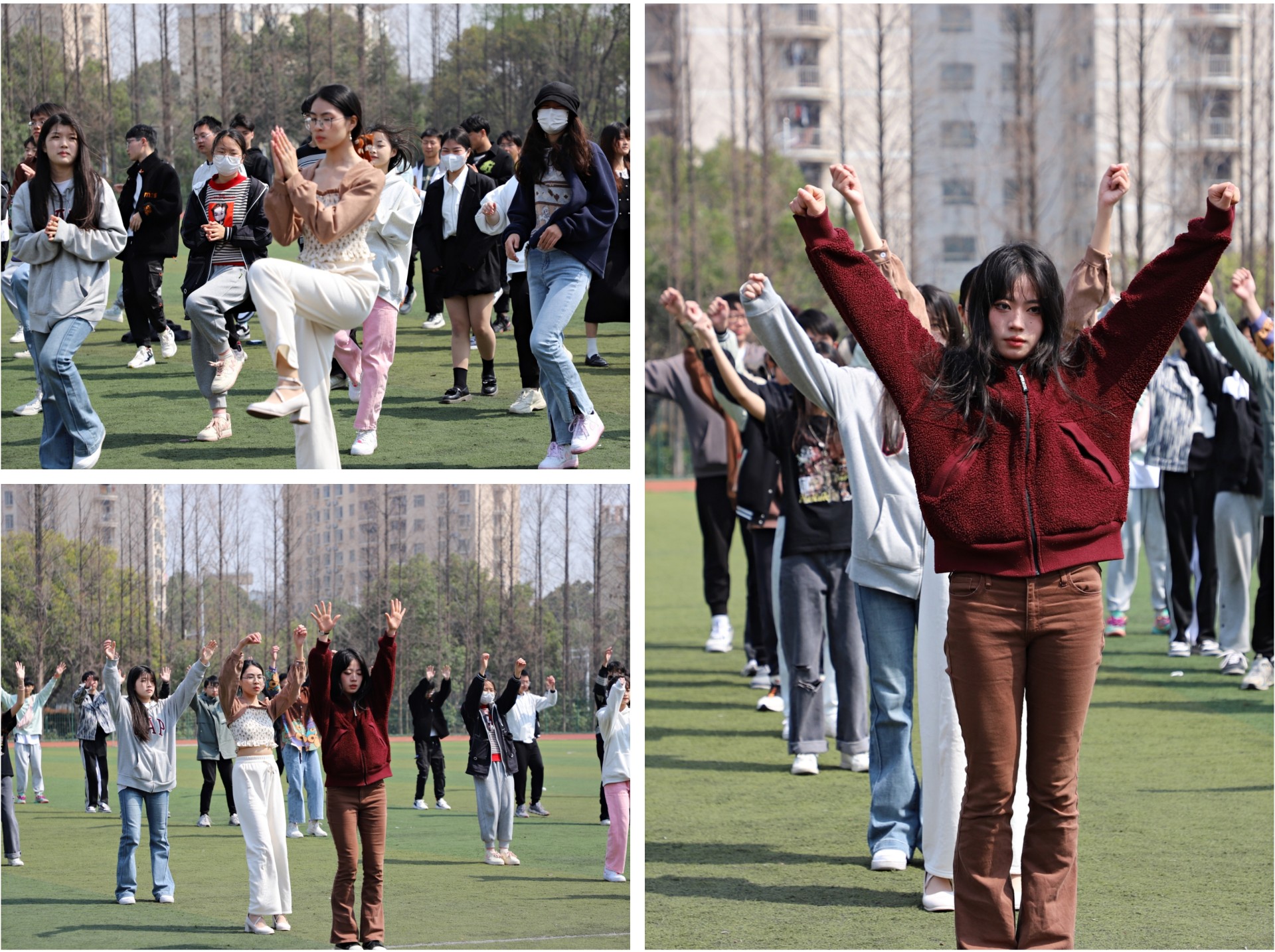 为贯彻落实团中央关于开展“走下网络、走出宿舍、走向操场”大学生主题群众性课外体育锻炼活动试点工作的方案和学校相关指示精神,结合春满四合院 开展“三走”主题团日活动的具体安排,艺术设计与建筑工程系22级大一学生在辅导员廖晶晶老师的带领下,在操场开展了“阳光校园,三走有我”的啦啦操排演活动。