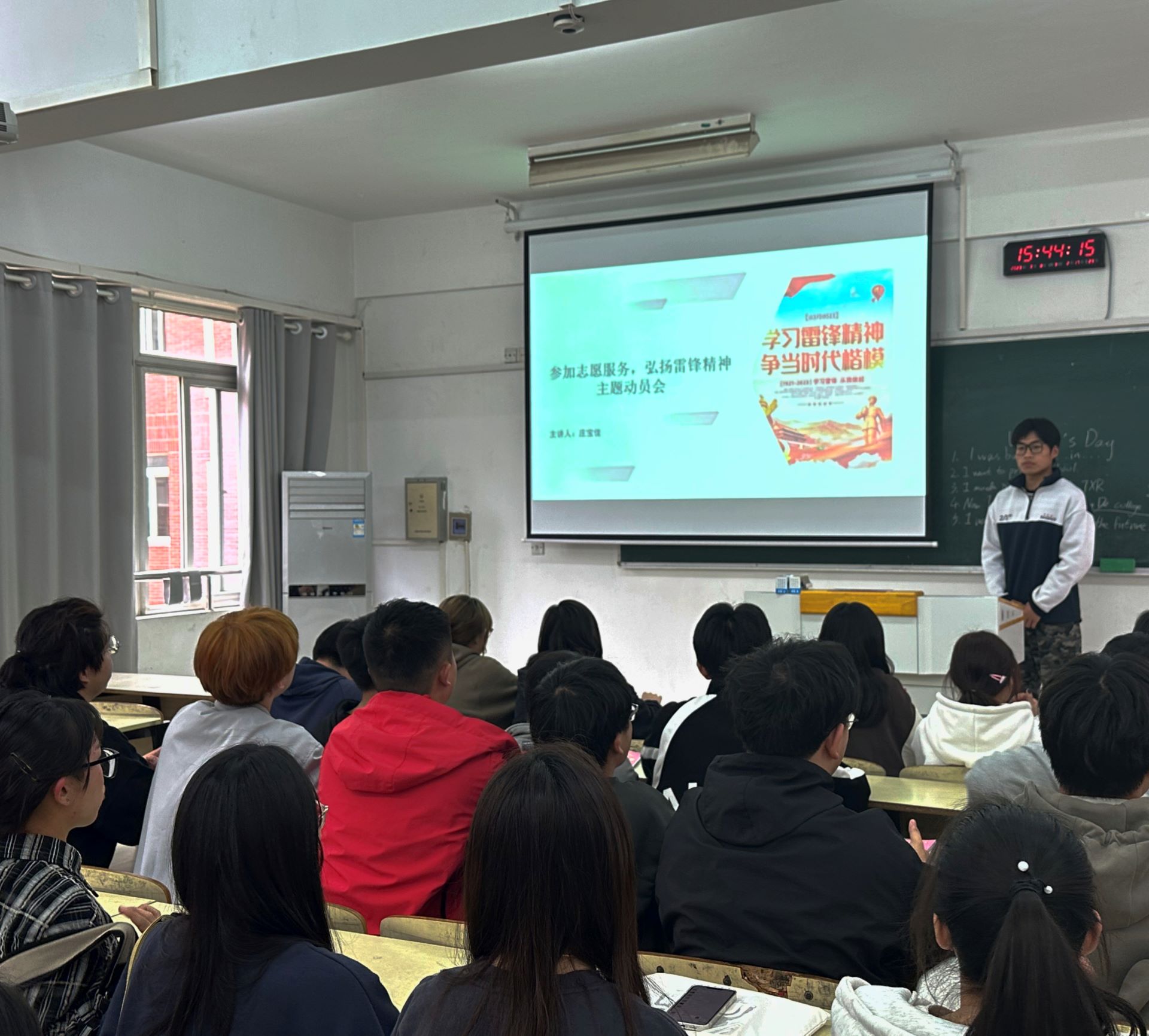 岁序常易,华章日新。半个多世纪以来,雷锋精神犹如和煦阳光,温暖着无数人的心田,激励着无数志愿服务者无私奉献、助人为乐。斯人虽远去,精神永长存。今年是毛泽东等老一辈革命家为雷锋同志题词60周年。60年来,学雷锋活动在全国持续深入开展,雷锋的名字家喻户晓,雷锋的事迹深入人心,雷锋精神滋养着一代代中华儿女的心灵。为增强同学们学习雷锋的意识,激发同学学习雷锋劲射的热情,提升广大同学的思想境界。另一方面利用三月学雷锋活动月,激发同学们的志愿者服务精神。艺术设计与建筑工程系22级建筑室内设计专业进行以“参加志愿服务,弘扬雷锋精神”为主题的社会志愿主题团课。