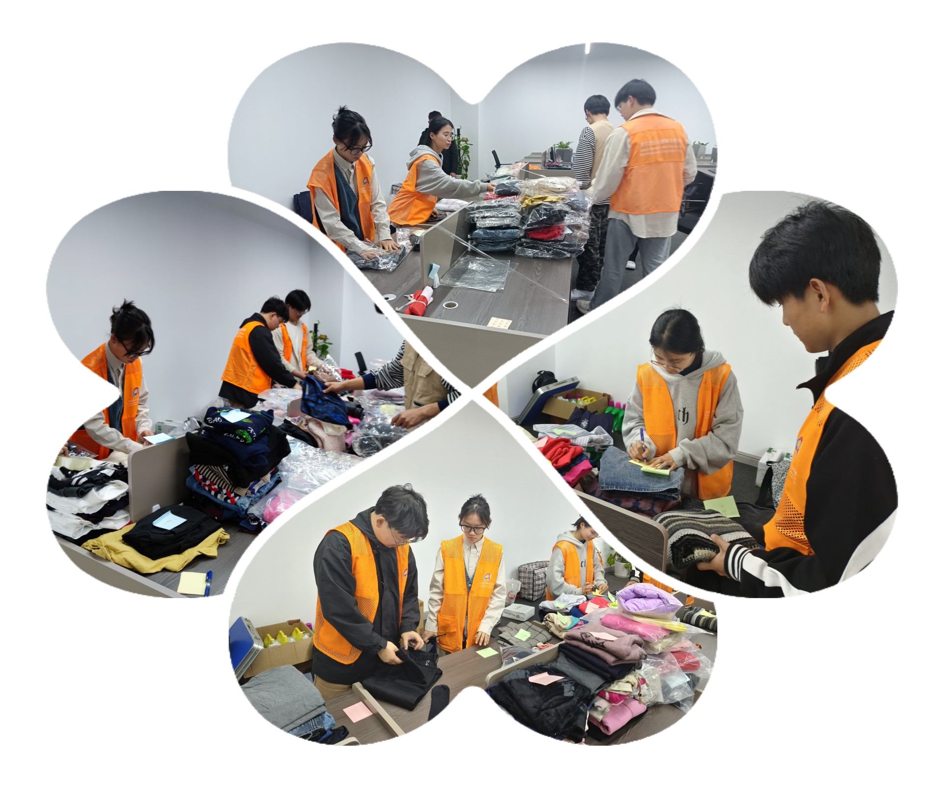 会议结束后,同学们帮助志愿服务社整理和打包爱心人捐赠的衣物。他们分工明确,相互协作,一箱又一箱的衣物经同学们折叠,贴上信息标签,装入袋子,胶带封口后全部打包完成。活动的最后,同学们与服务社领导、社会上的志愿人士进行了合影,出色的完成了本次志愿活动,获得了志愿服务社领导的一致肯定。