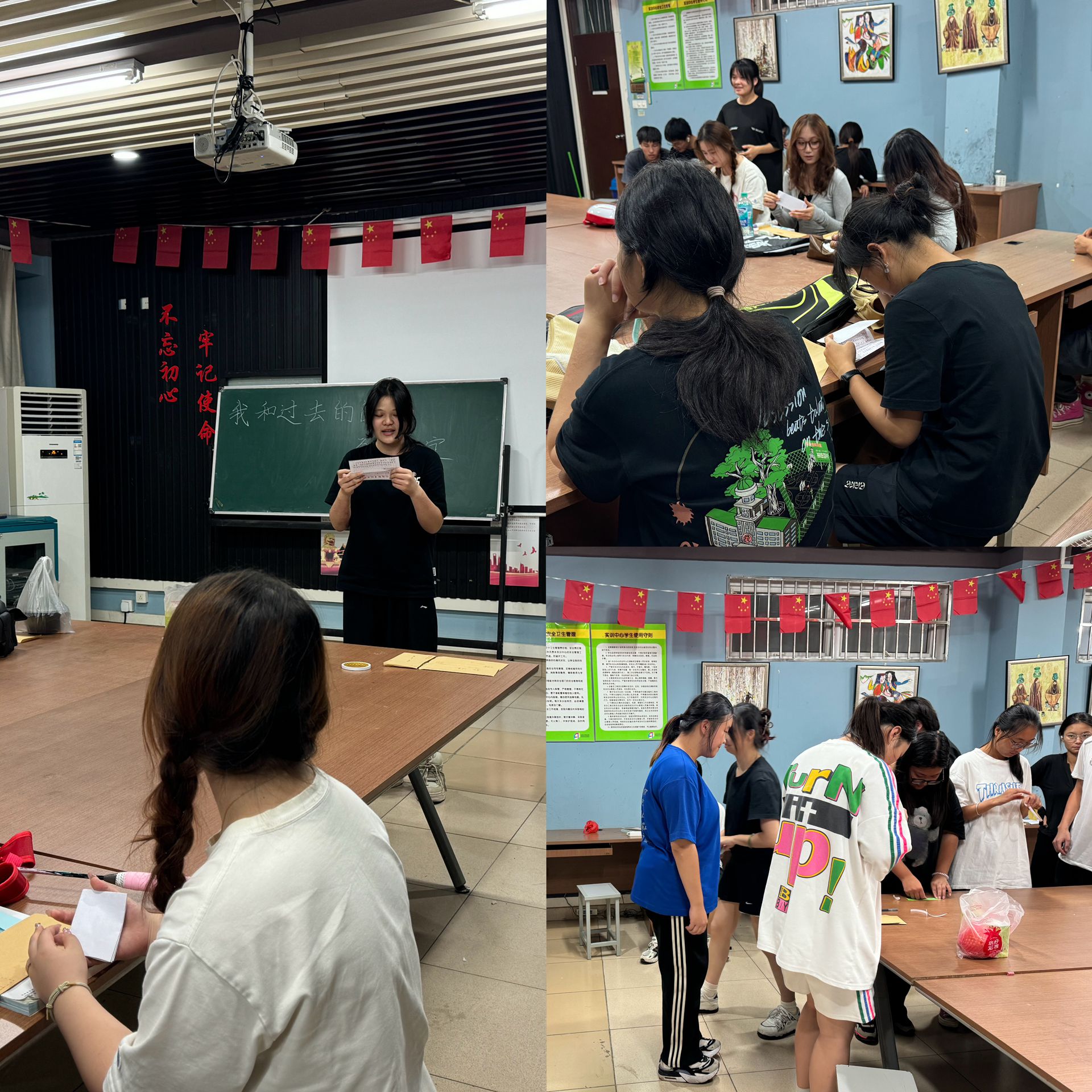 紧接着,进入“我和过去的自己有个约定”环节,辅导员为同学们准备了一年前写给自己的一封信,学生们通过阅读自己一年前写给自己的信,回顾过去的自己,思考那时的梦想、遗憾、目标,完成了与过去的自己跨时空的交流;与大一的自己完成了一次心灵的对话,基于对过去一年大学生活的经历和思考,为未来的自己又设定一个新的方向。这个环节让同学们对过去的自己有了清晰的认识,也促使他们不断自我反省和改进。