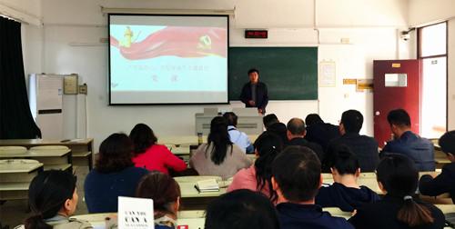 副院长薛忠云以《立德树人初心 人才培养使命——争做新时代合格共产党员》为题,为学生处、后勤处、保卫处全体党员讲授专题党课。他从主题教育的重大意义、目标任务、工作安排三个方面,以历史的视野带领党员从中国共产党诞生、发展、壮大不同历史阶段形成的革命精神中感悟“初心”的深刻内涵;从当前我们党所面临的“四大考验”、存在的“四大危险”的深刻反思中理解“使命”的重要意义。薛忠云要求全体人员严格对照标准,学做结合,知行合一,做到“五个过硬”;党员教师要坚持“四有标准”,即要有理想信念、有道德情操、有扎实学识、有仁爱之心,努力做一名新时代合格共产党员。