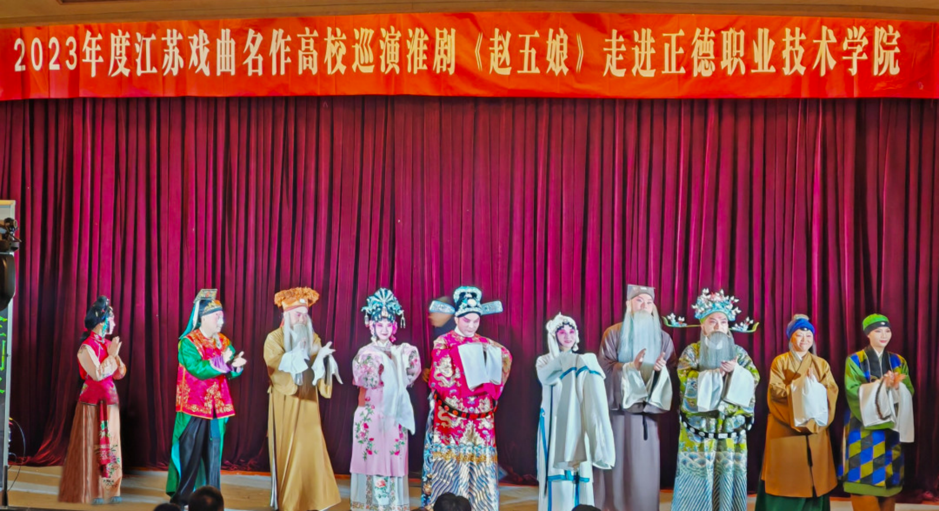 粉墨青春,青春有戏。为弘扬中华优秀传统文化,以美育人、以美化人,12月14日,春满四合院 团委与江苏省淮剧团联合开展“戏曲进校园”活动,淮剧经典剧目《赵五娘》在报告厅精彩上演,300余名师生共赏淮剧之韵,体悟非遗之美。