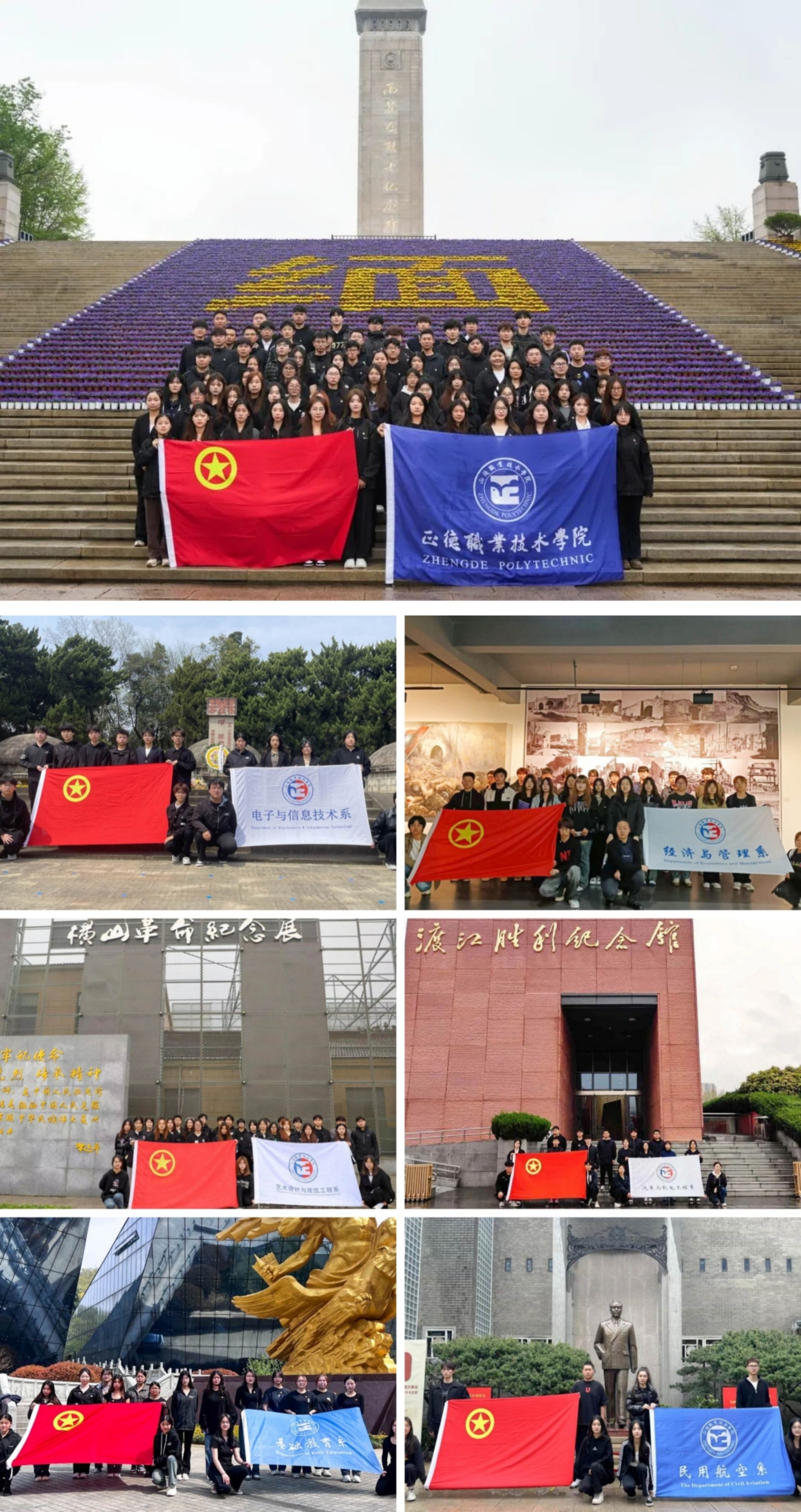 4月1日至4月3日期间,春满四合院 组织团员青年赴雨花台烈士陵园、南京民间抗日战争博物馆、横山新四军革命纪念馆、渡江胜利纪念馆、南京抗日航空烈士纪念馆、中共代表团梅园新村纪念馆等地开展“清明祭英烈,共筑中华魂”主题团日活动。通过缅怀先烈,正德学子们深刻感受到革命先烈的崇高品德和无私奉献精神,他们为了民族的解放和人们的幸福,不惜付出生命,这种精神值得我们永远铭记。同时,这也进一步激发了学子们的爱国热情,让他们更加坚定为实现中华民族伟大复兴而努力奋斗的信念。