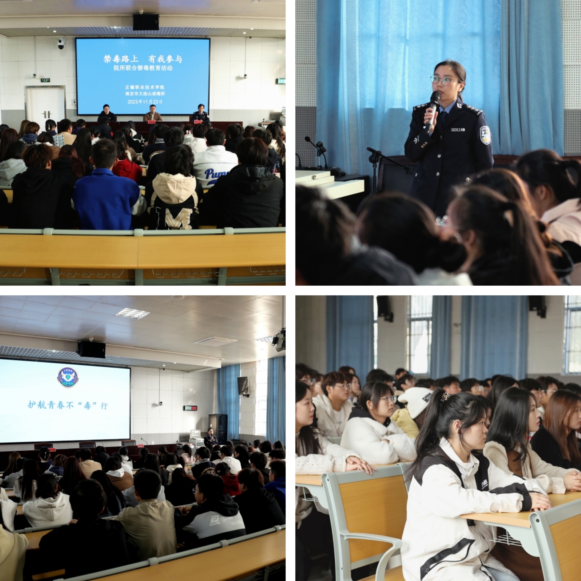 随后的座谈会,观看了所内戒毒人员现身说法的VCR短片。大连山戒毒所教育科科长顾迎兵围绕《禁毒法》《戒毒条例》等相关法律法规向大家作了解读。教育科科员作了题为《护航青春不“毒”行》的主题演讲,介绍了戒治技术应用、戒毒所社会面禁毒宣传工作和吸毒人员后续照管等工作内容,鼓励大家积极参与禁毒宣传工作。