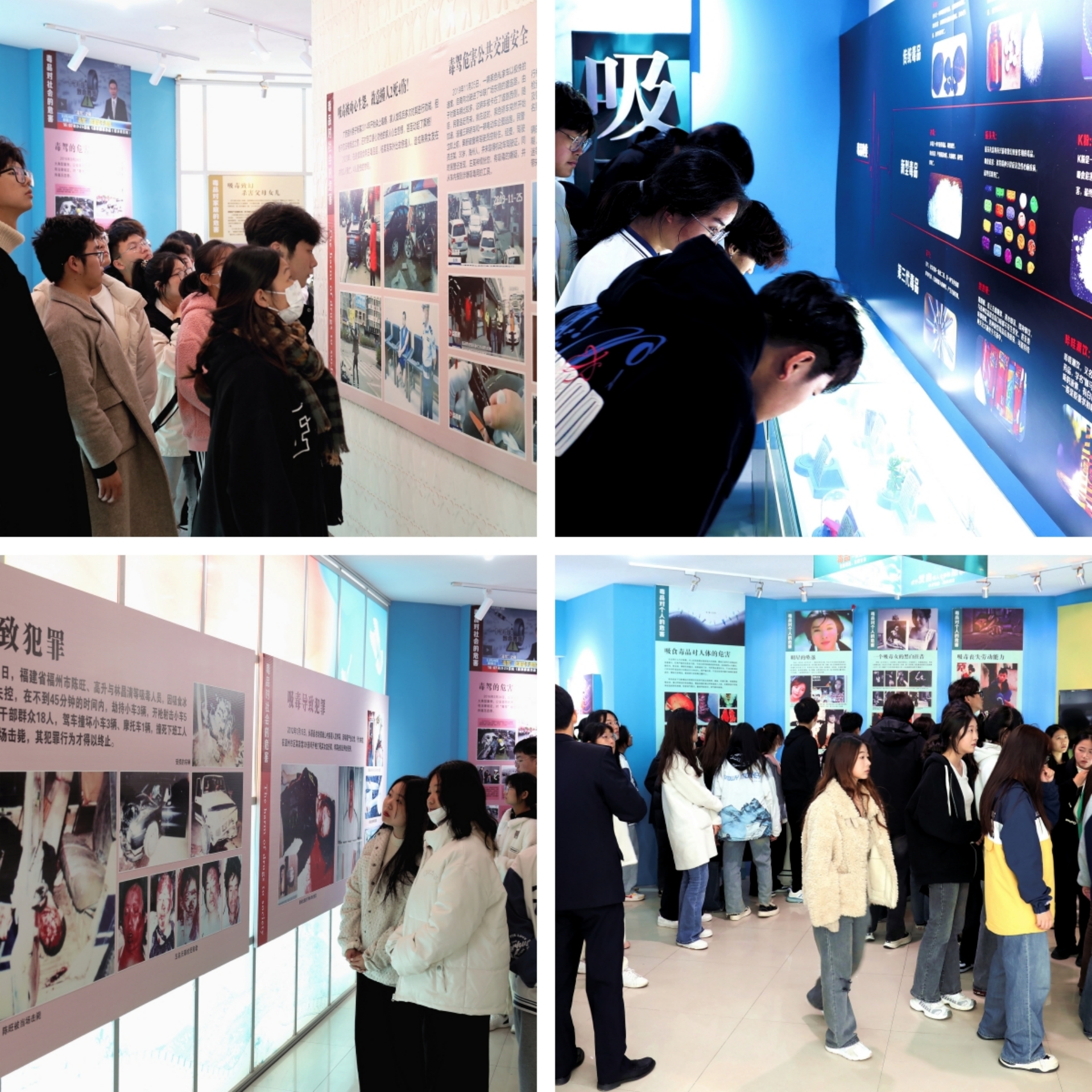 参观禁毒展厅过程中戒毒所相关负责同志向同学们详细介绍了戒毒所日常戒治管理工作。厅内一个个血淋淋的案例展现出吸毒者深陷“毒海”沉沦挣扎的惨痛经历,体现出毒品给个人、家庭和社会带来的巨大危害,告诫大家远离毒品,珍爱生命。